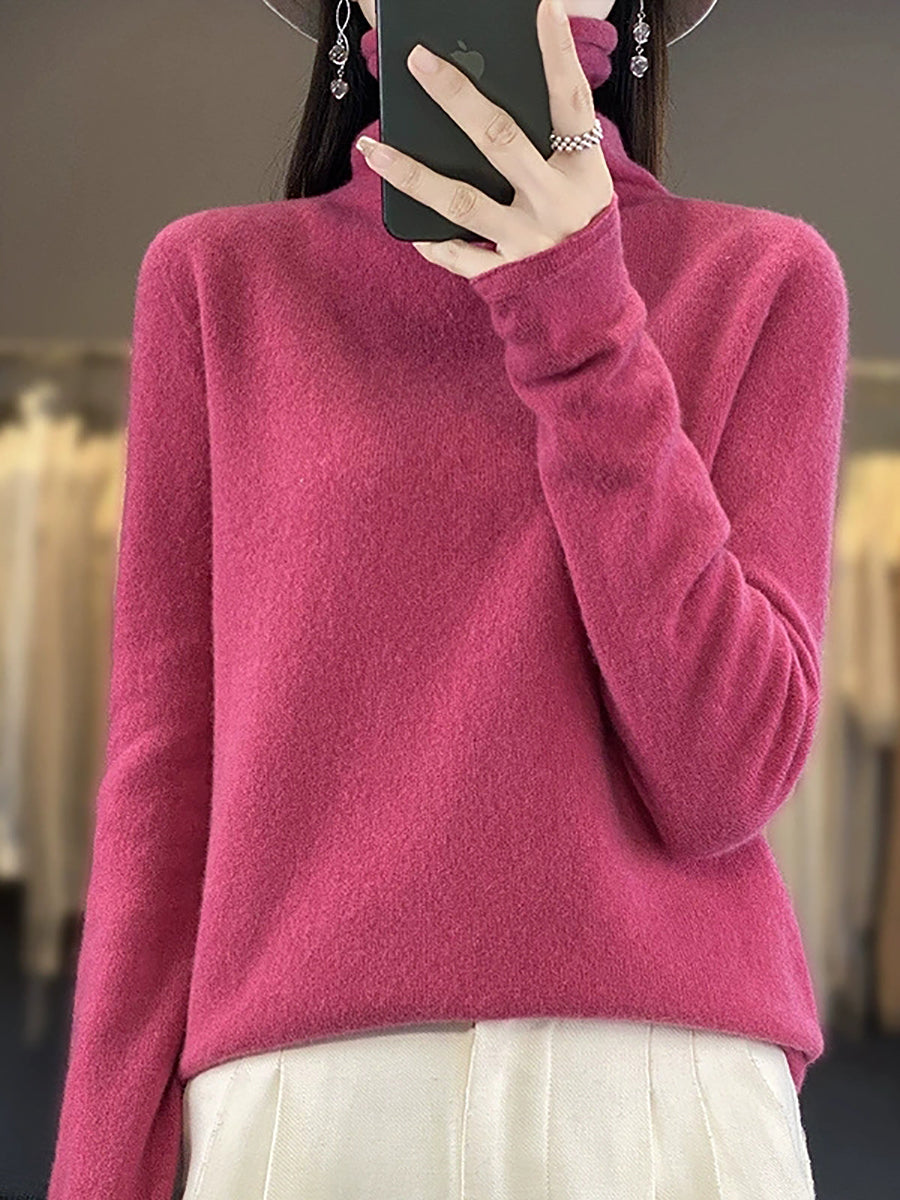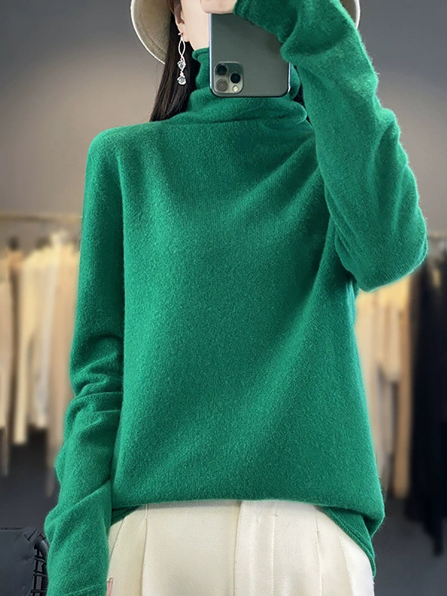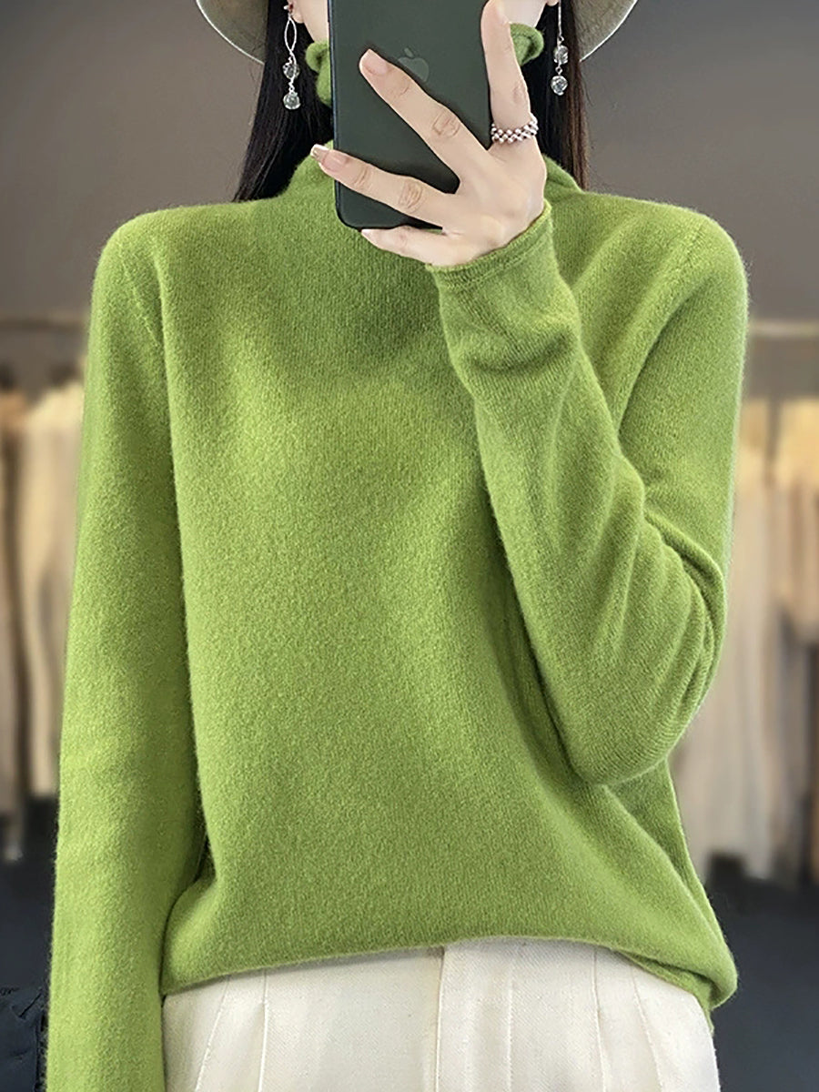 Konur vor frjálslegur hreinn litur ullarpeysa með hálsmáli