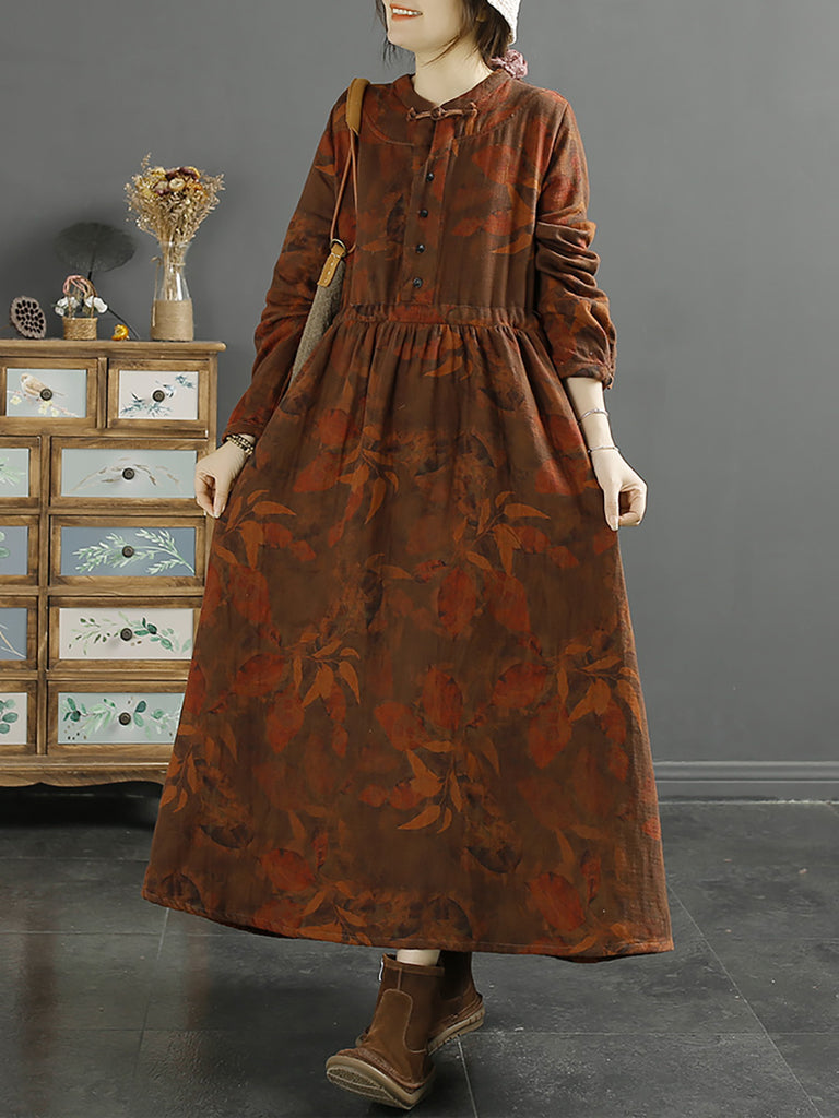 Haustkjóll fyrir konur í plússtærð, vintage laufmynstri úr bómullarefni