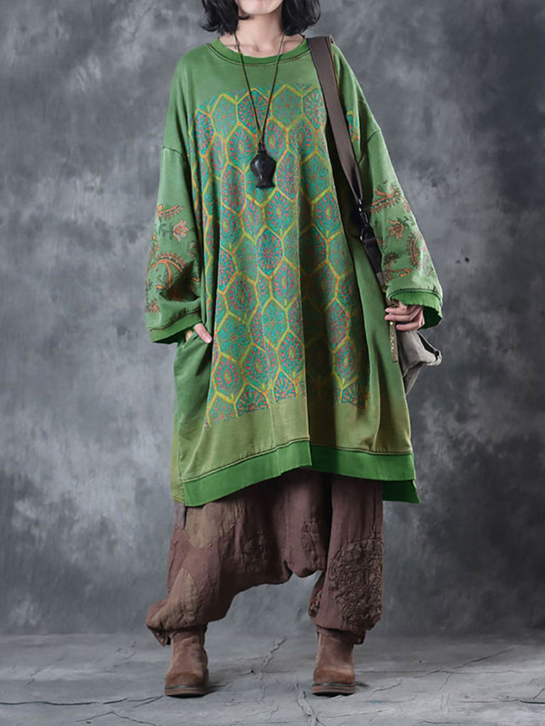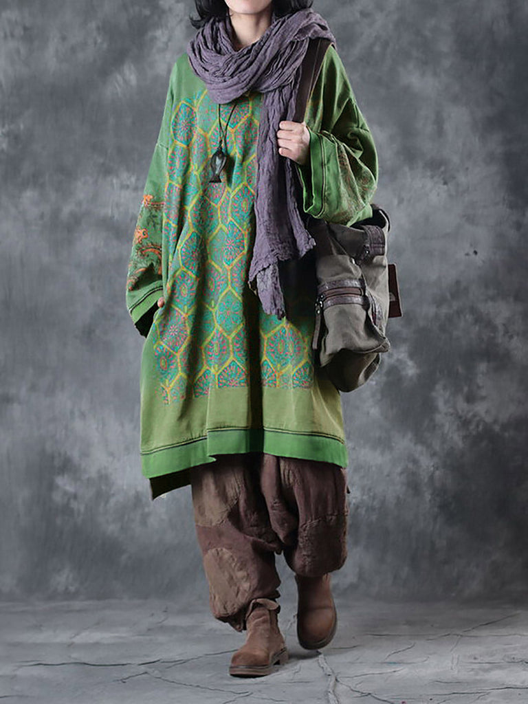 Kvenna Plus Stærð Blóma Bómull Vintage Casual Laus Prentun Maxi Dress