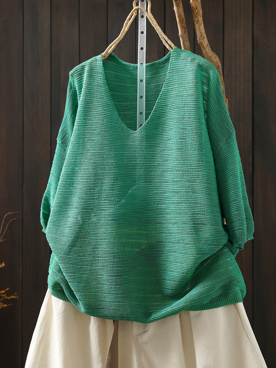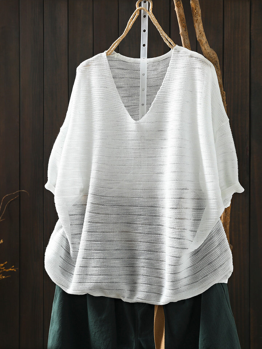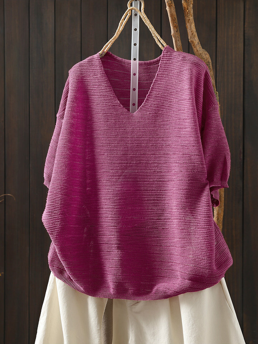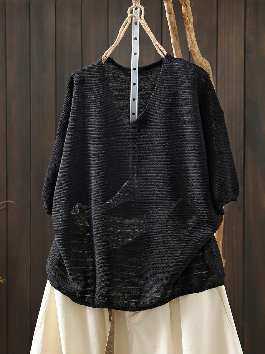 Sumar frjálslegur bómullarbolur með V-hálsmáli fyrir konur