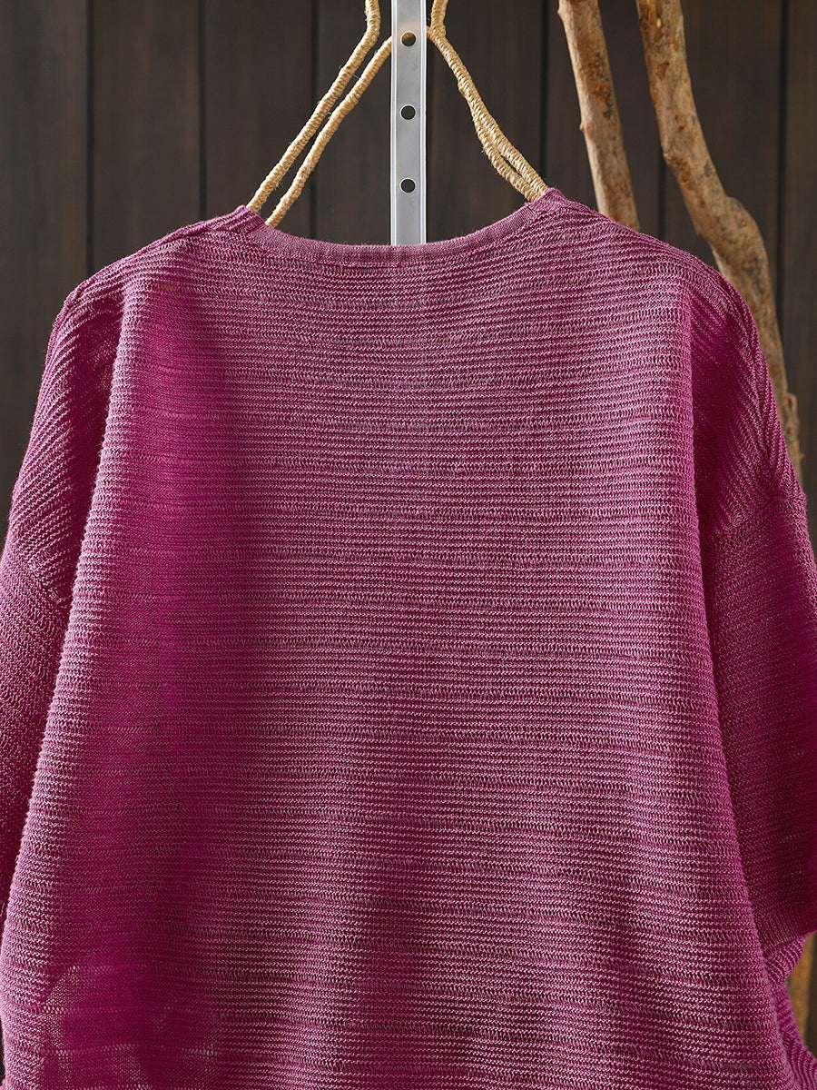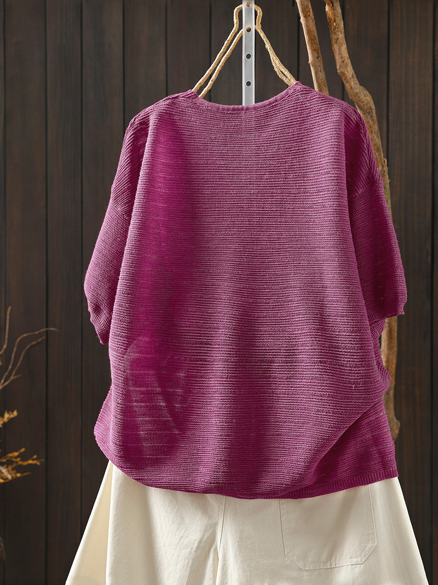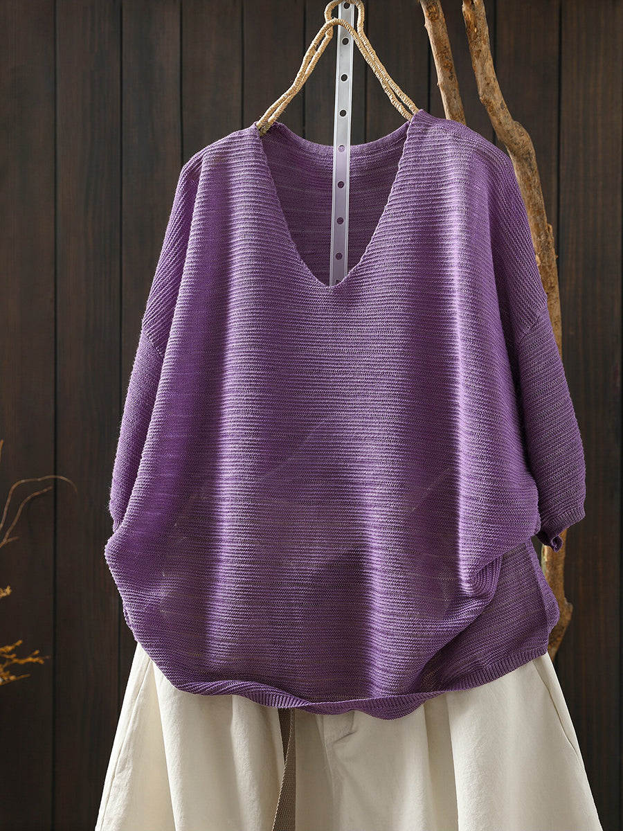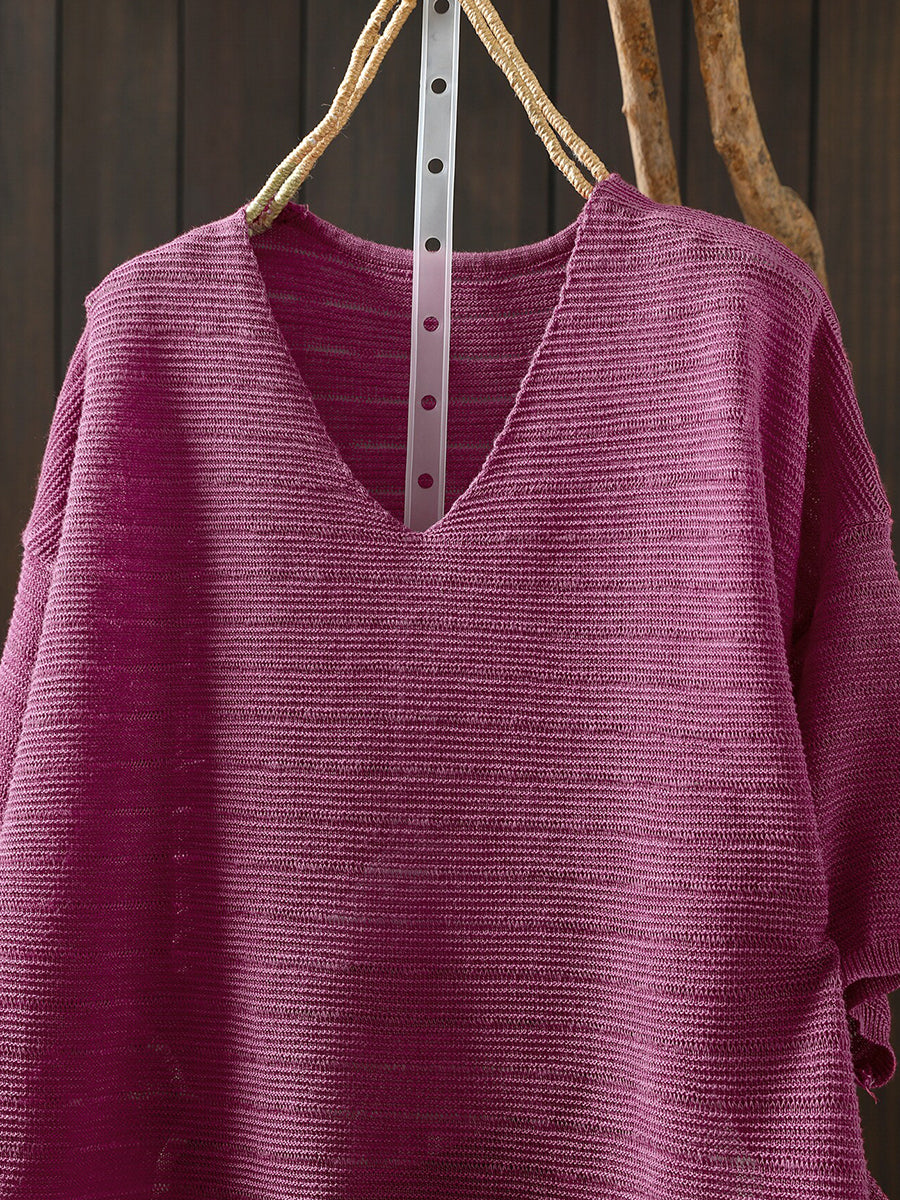 Sumar frjálslegur bómullarbolur með V-hálsmáli fyrir konur