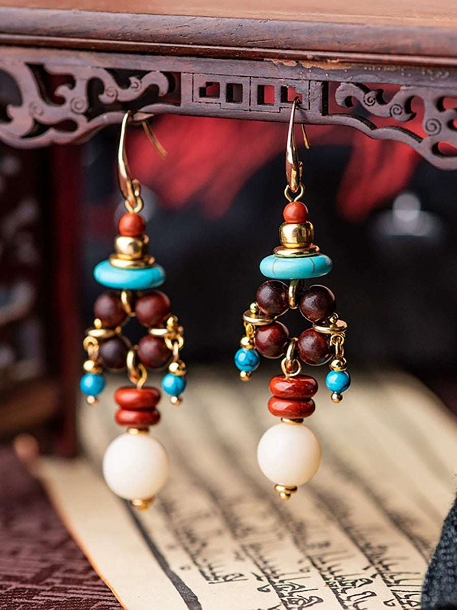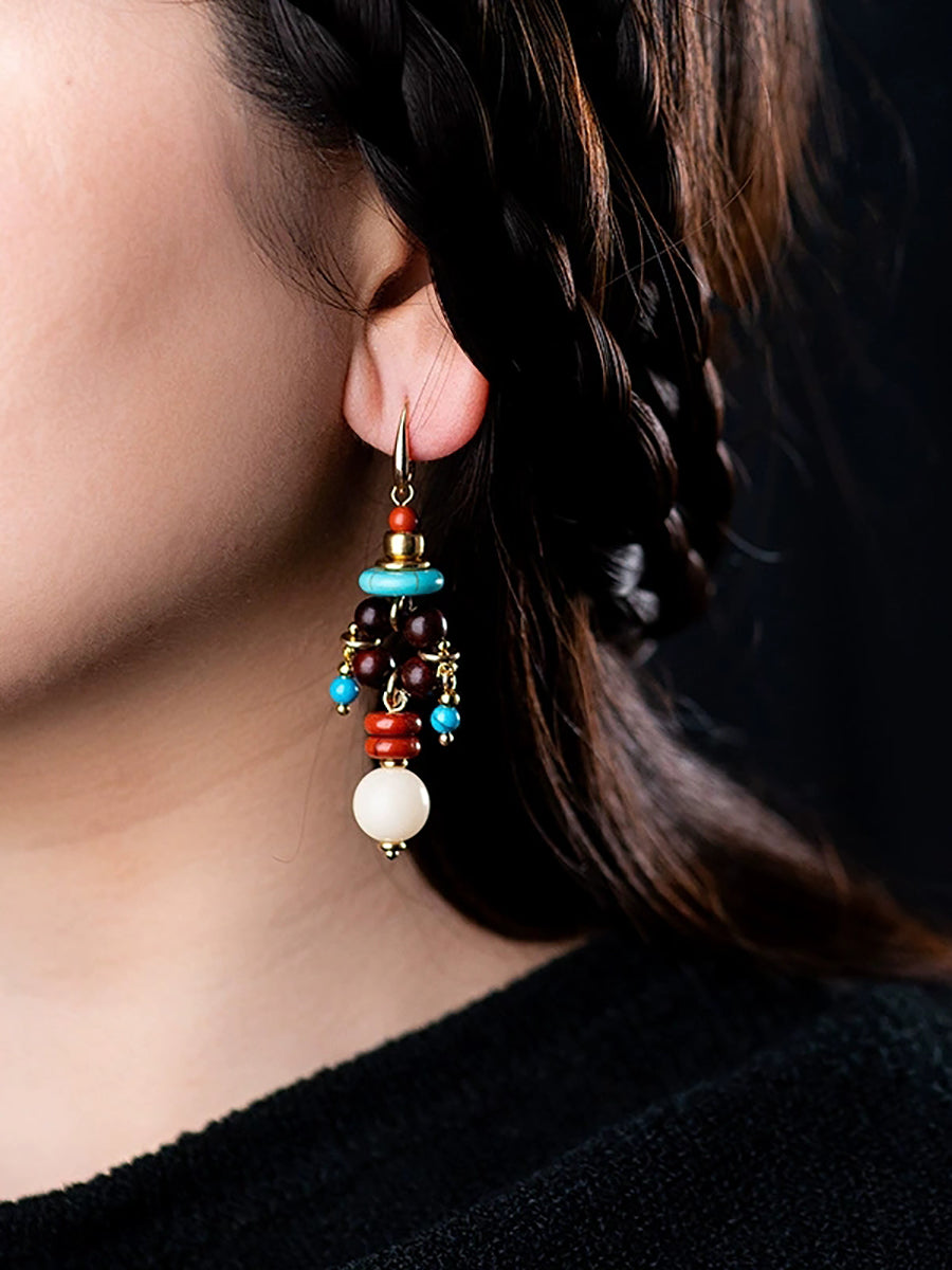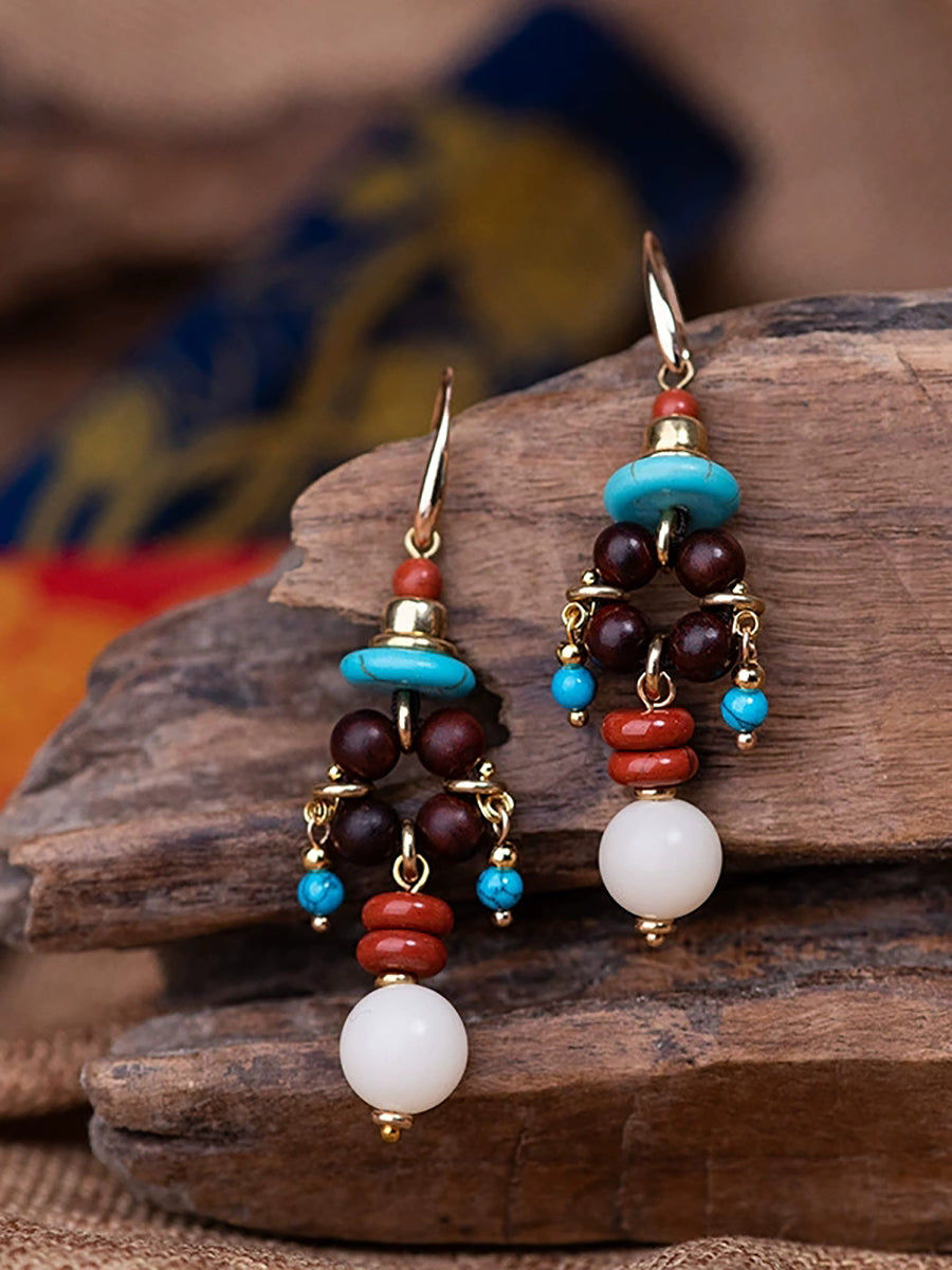Eyrnalokkar úr etnískum perlum úr álfelgum fyrir konur