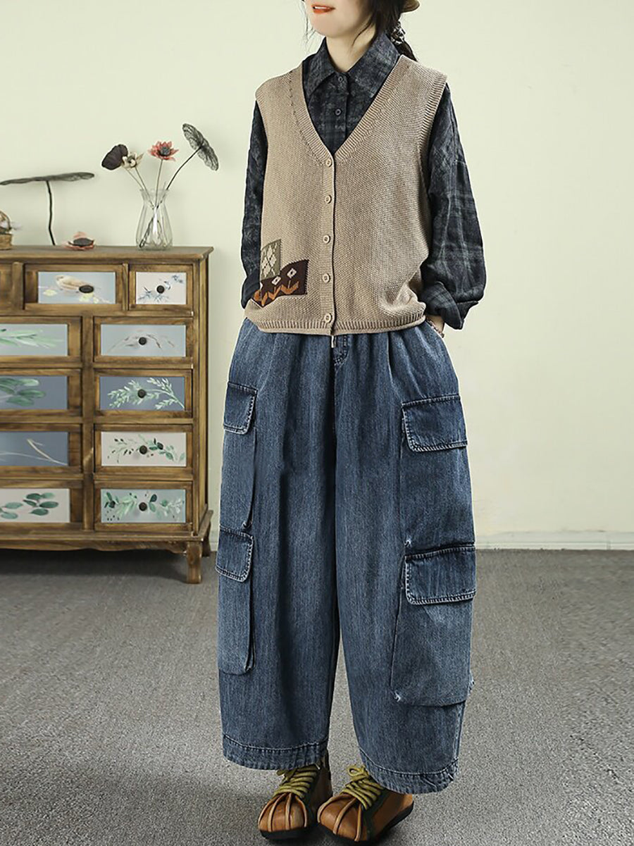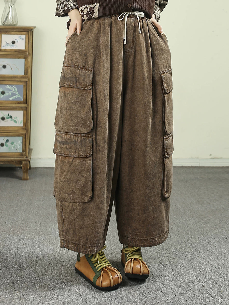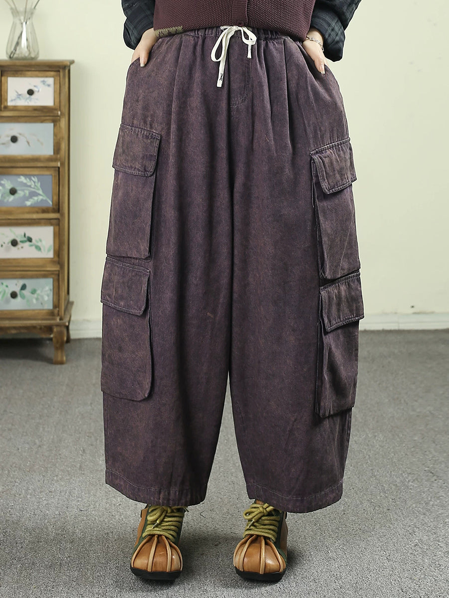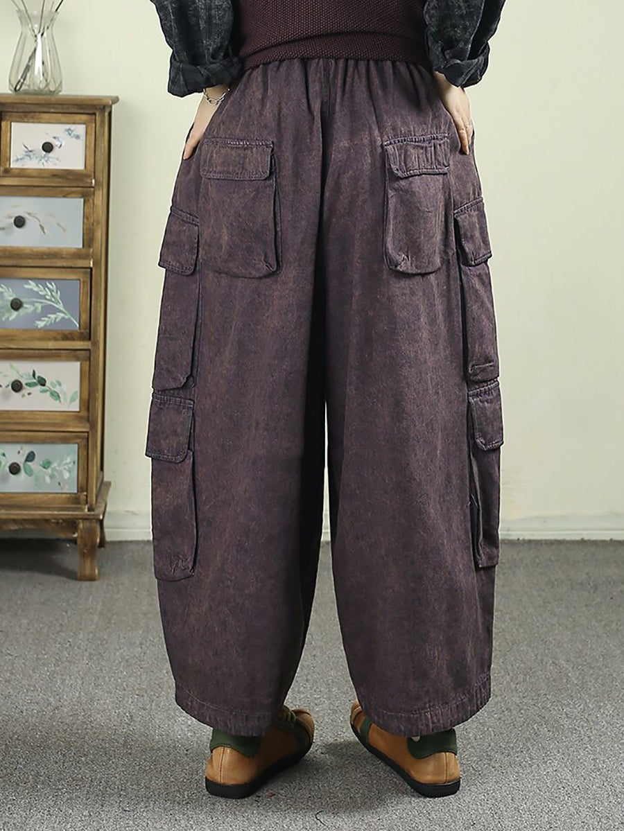 Konur sumar frjálslegar hreinar litaðar denim harem buxur