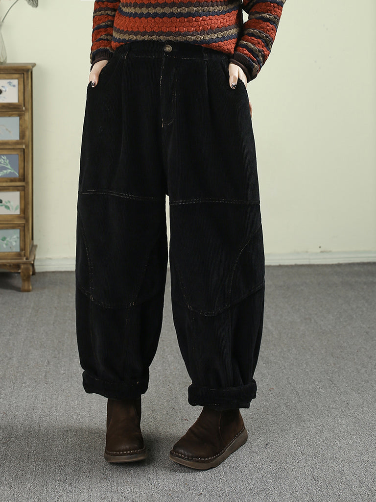 Vetrar Retro Hreinlitir Fleecefóðraðir Harem Buxur fyrir konur
