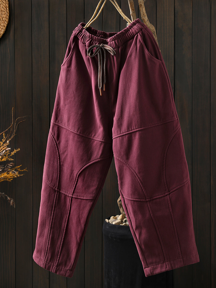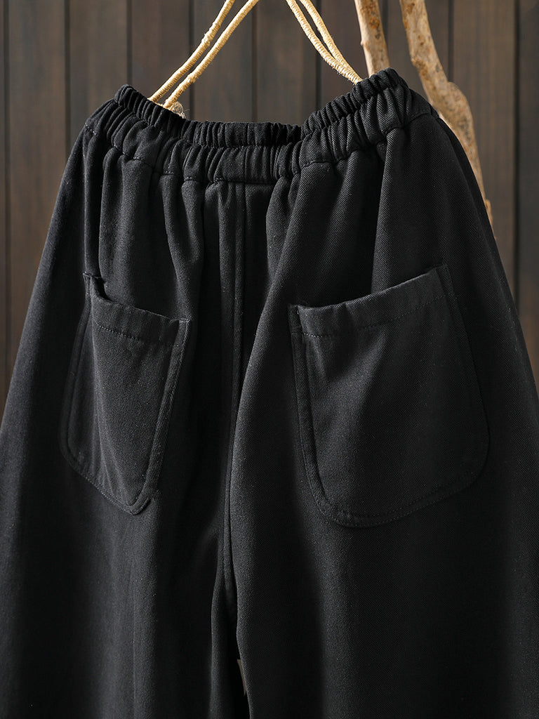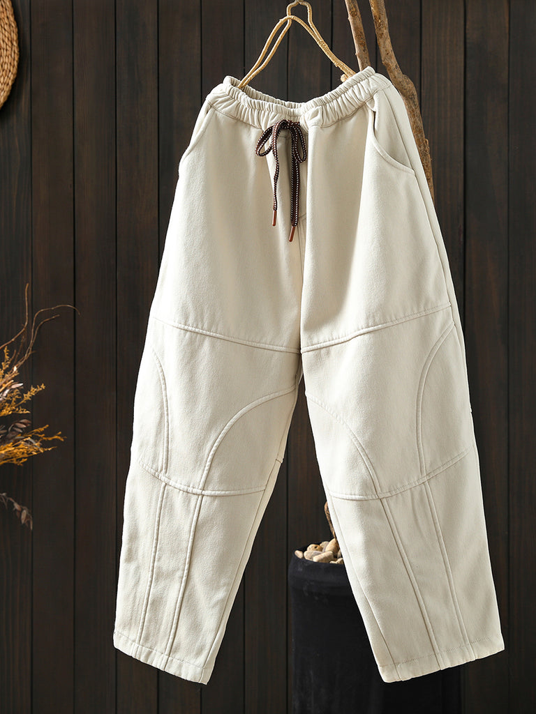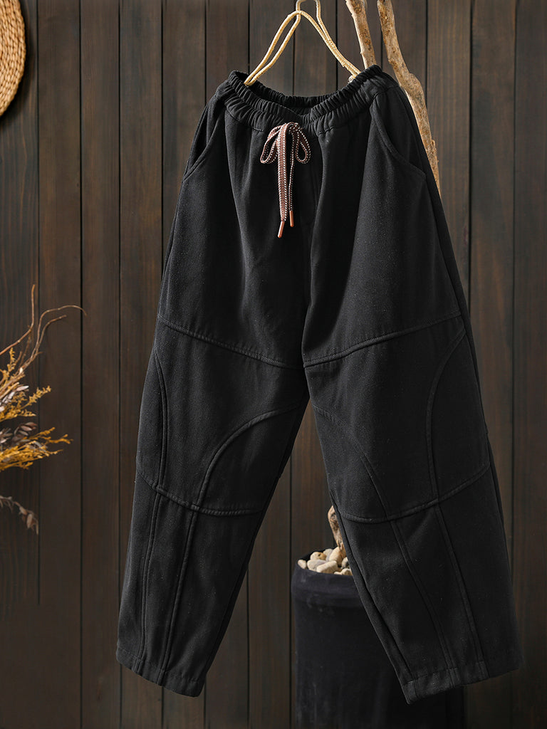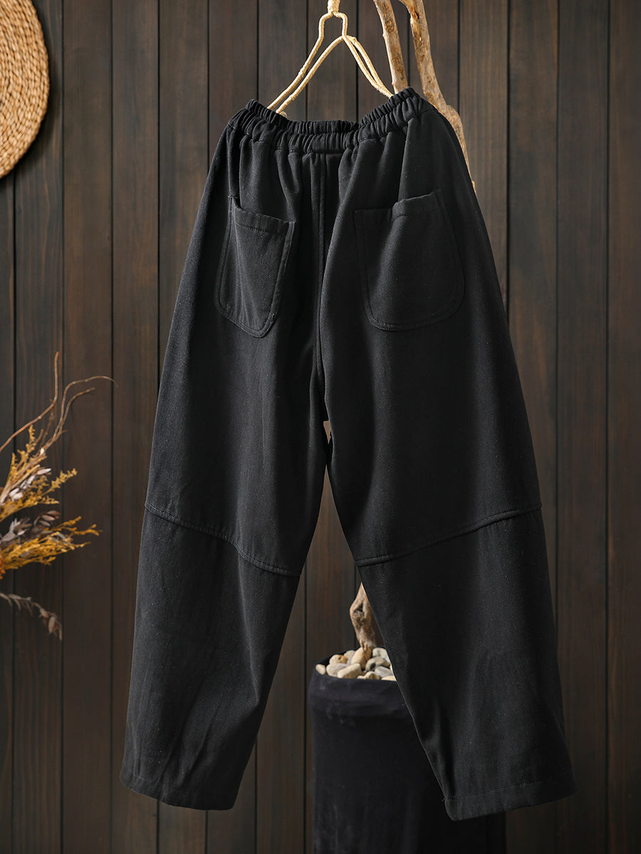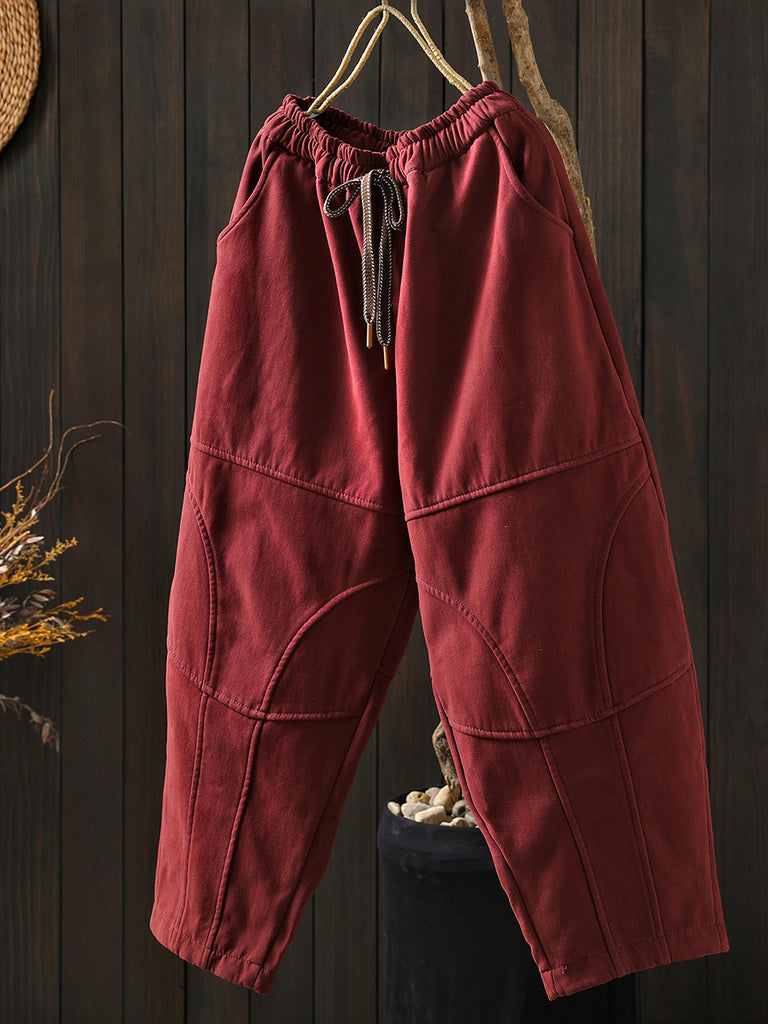 Vetrar Retro Hreinlitir Fleecefóðraðir Harem Buxur fyrir konur