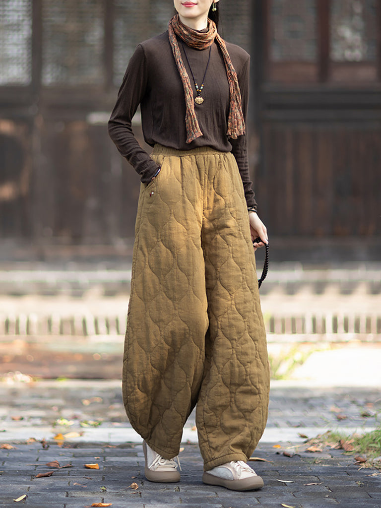 Vetrarbuxur fyrir konur, Retro, Hreinlitaðir, Púðaðir