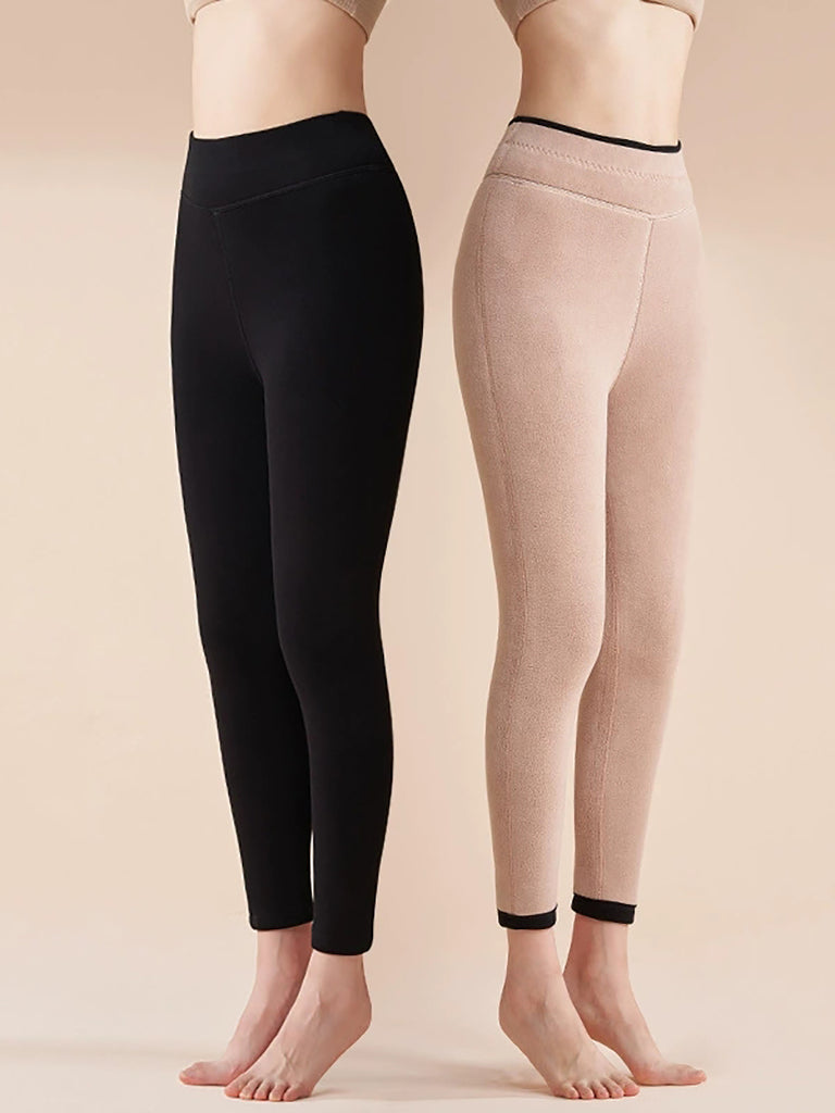 Haustbuxur fyrir konur, hlýjar, hreinar litaðar flísfóðraðar leggings
