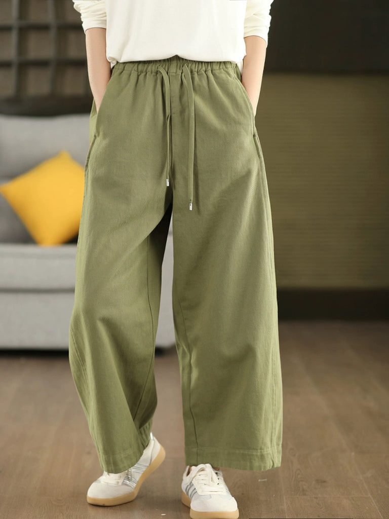 Beinar haustbuxur fyrir konur, úr hreinum lit, úr bómull