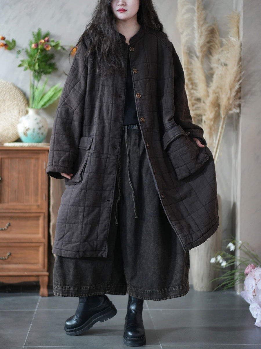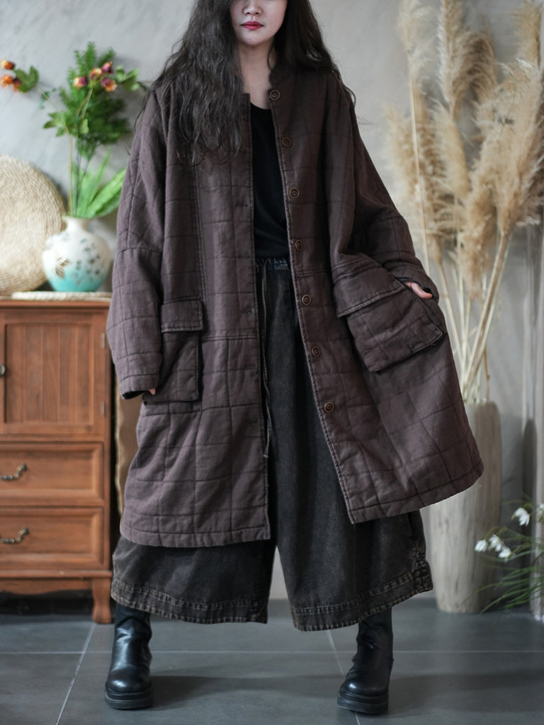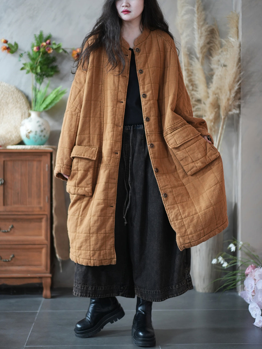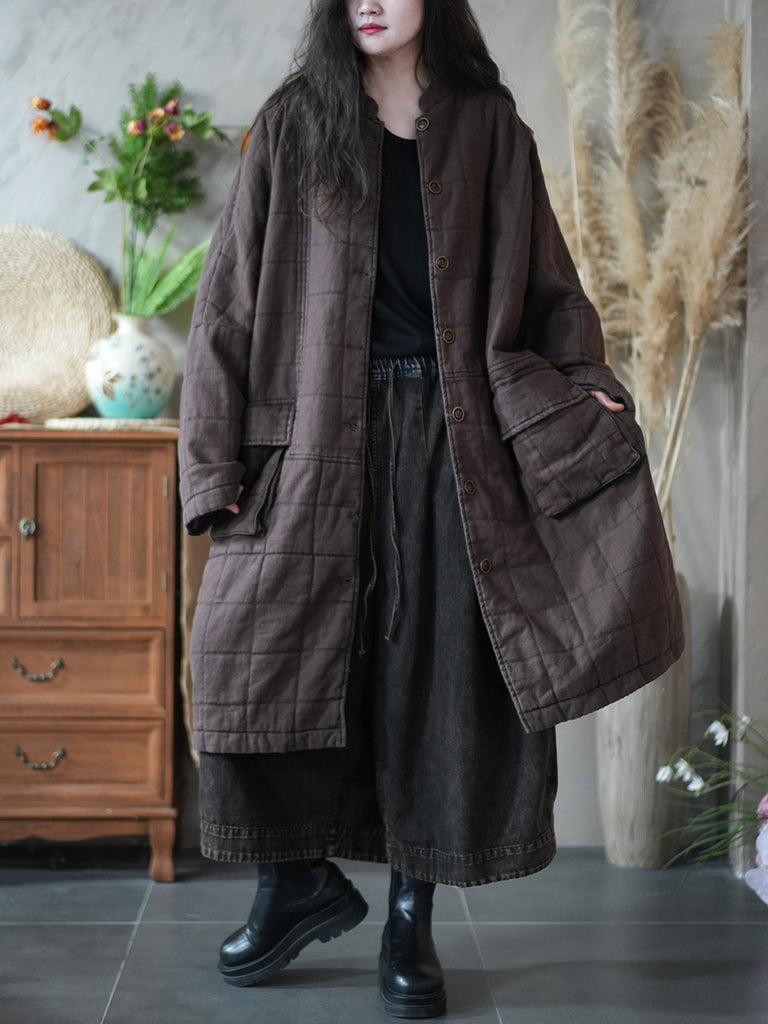 Vetrarfrakki með standkraga og púða fyrir konur í retro-stíl