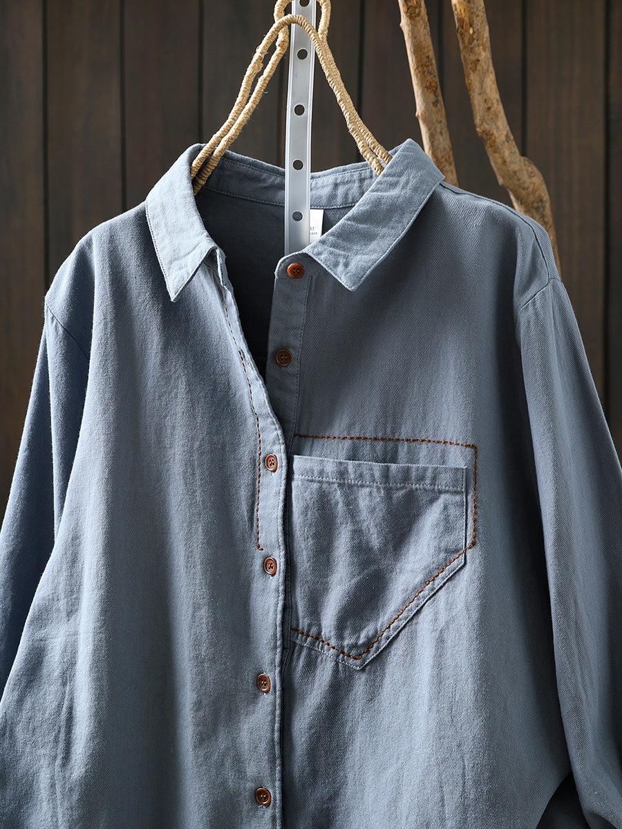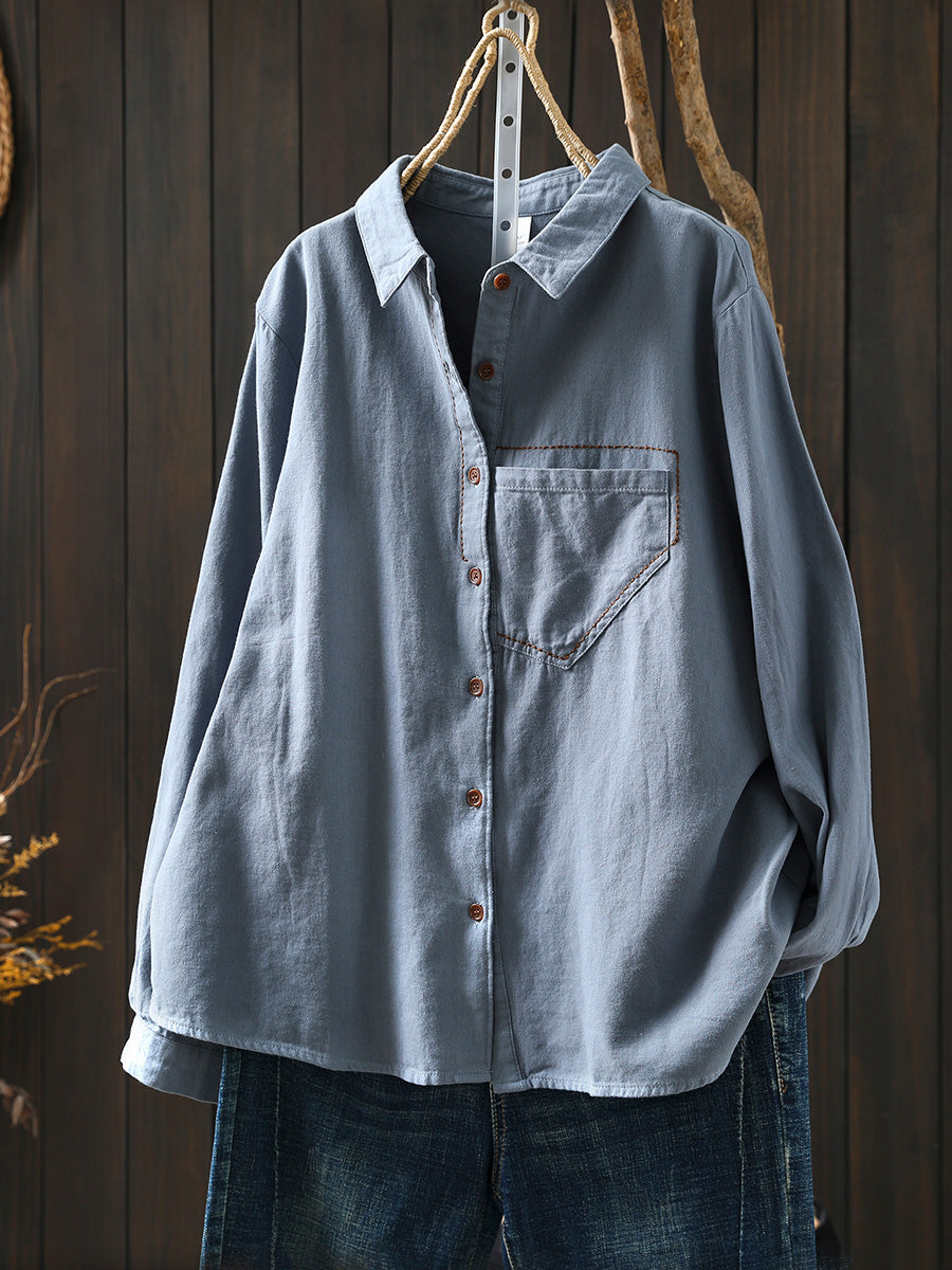 Vetrarlistræn blússa með niðurfelldum kraga fyrir konur
