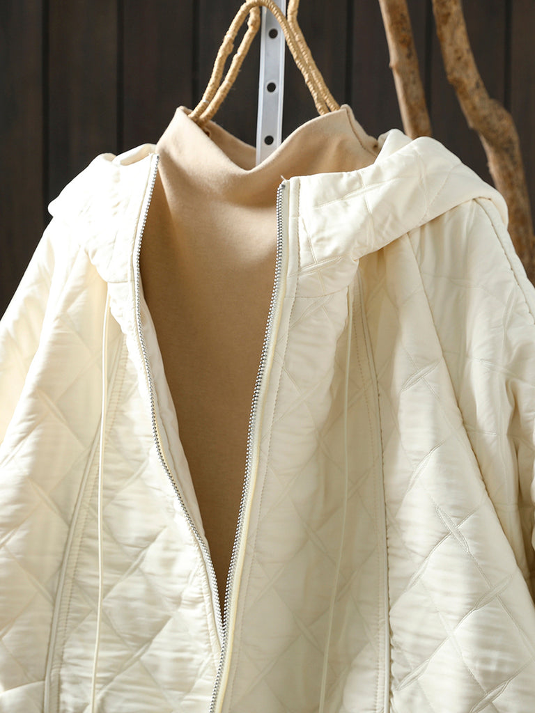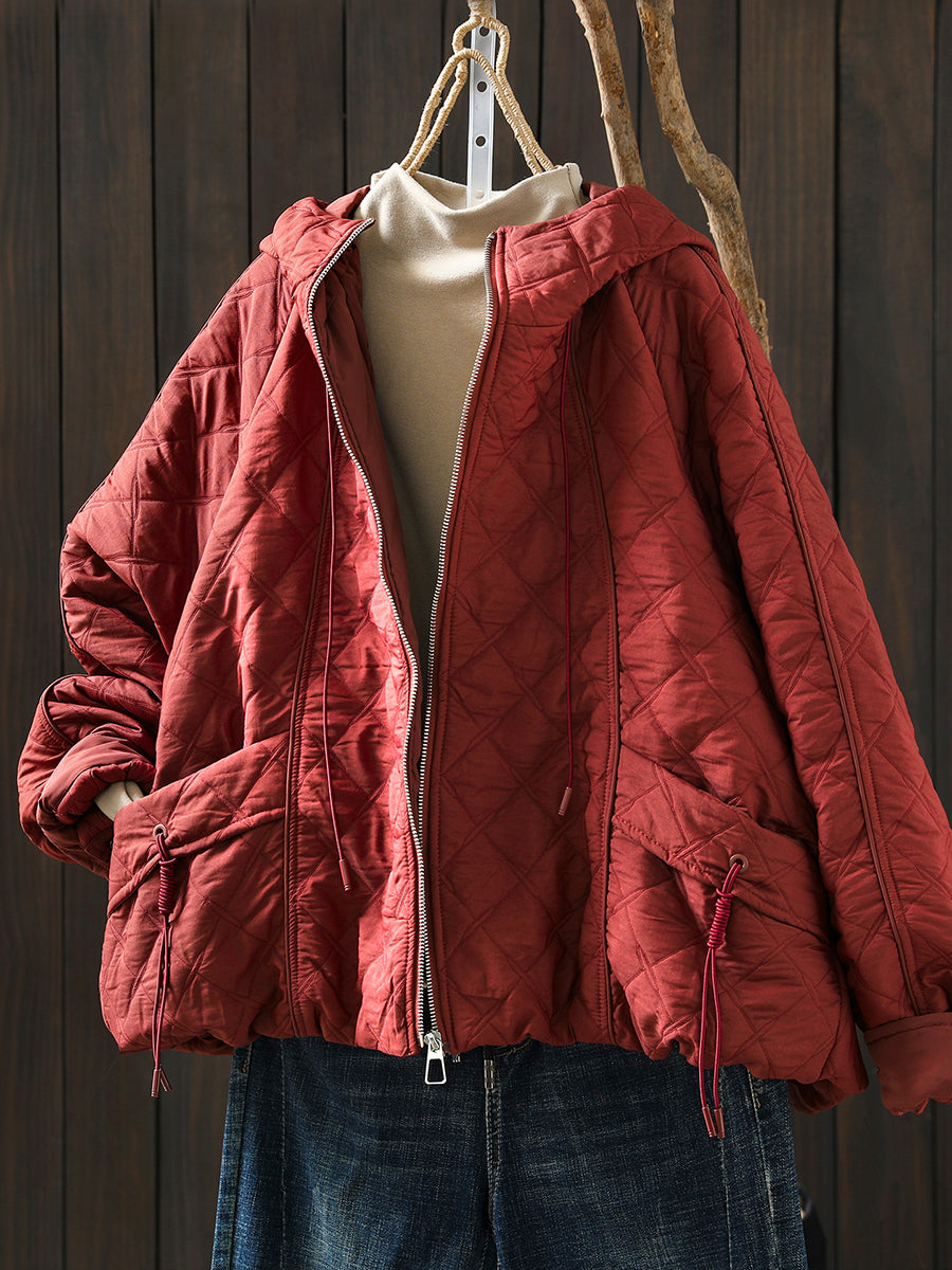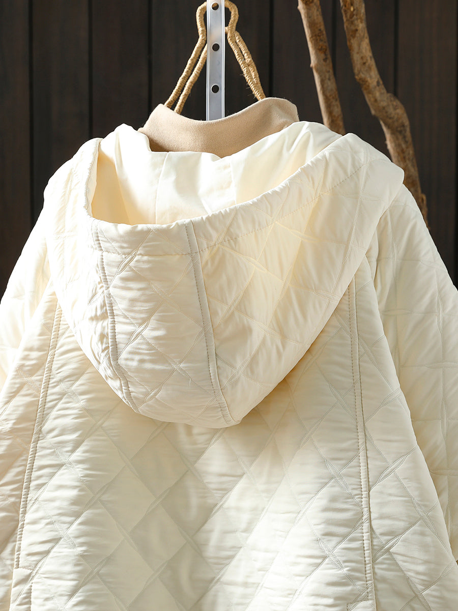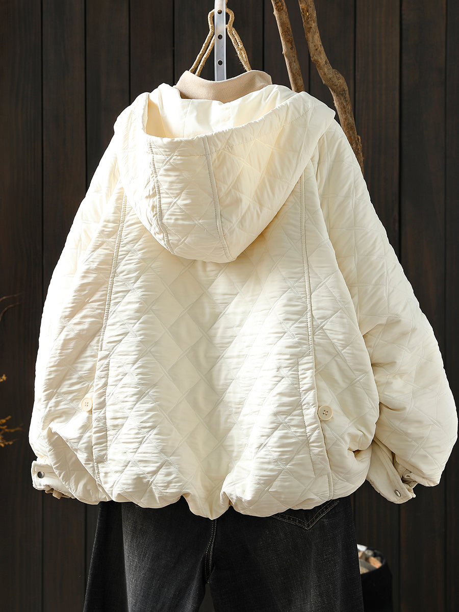 Vetrar Retro Pure Color púðað hettujakki fyrir konur