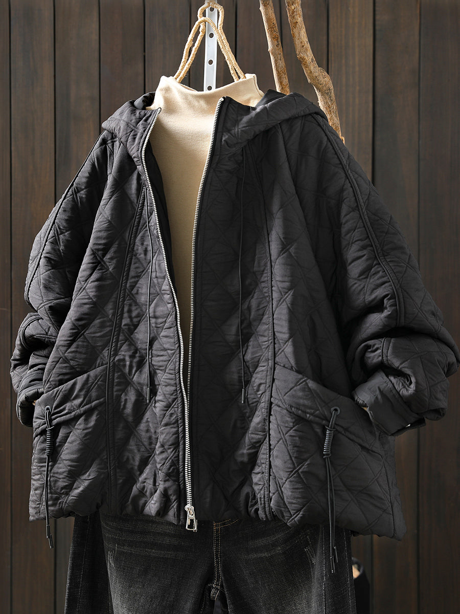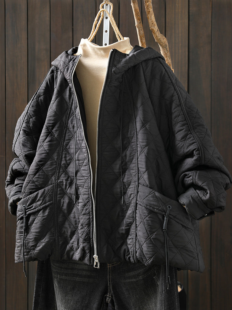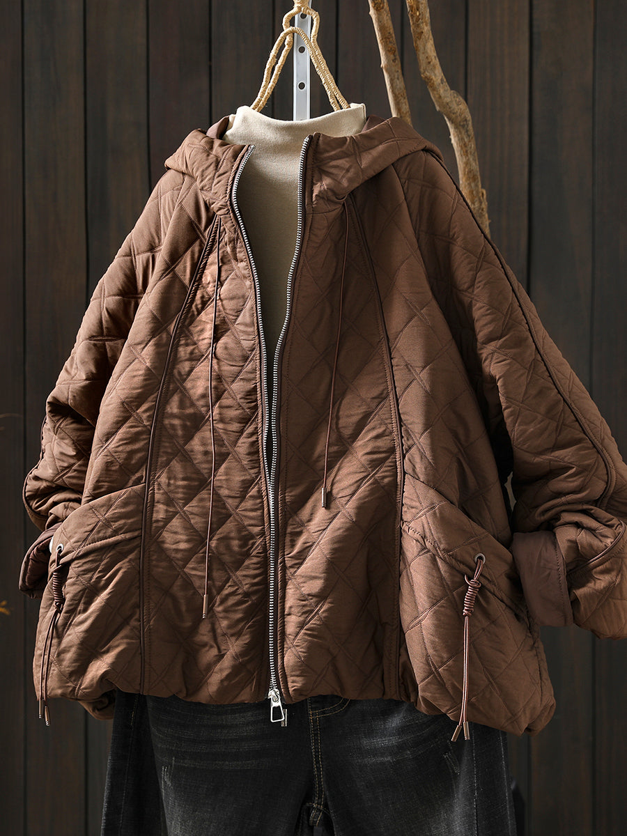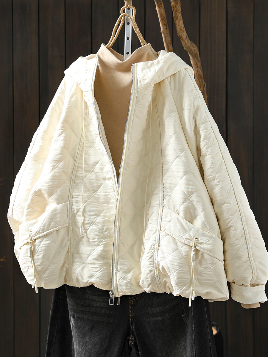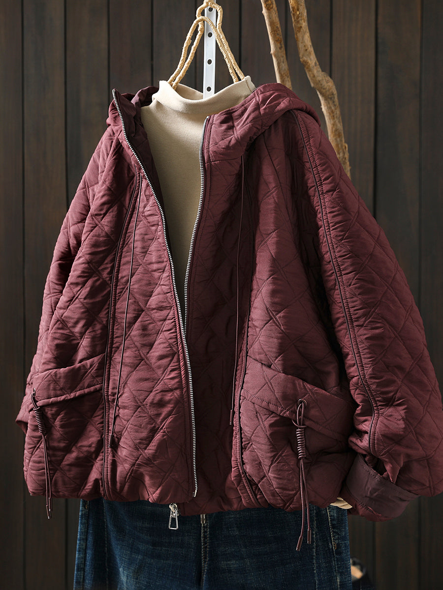 Vetrar Retro Pure Color púðað hettujakki fyrir konur
