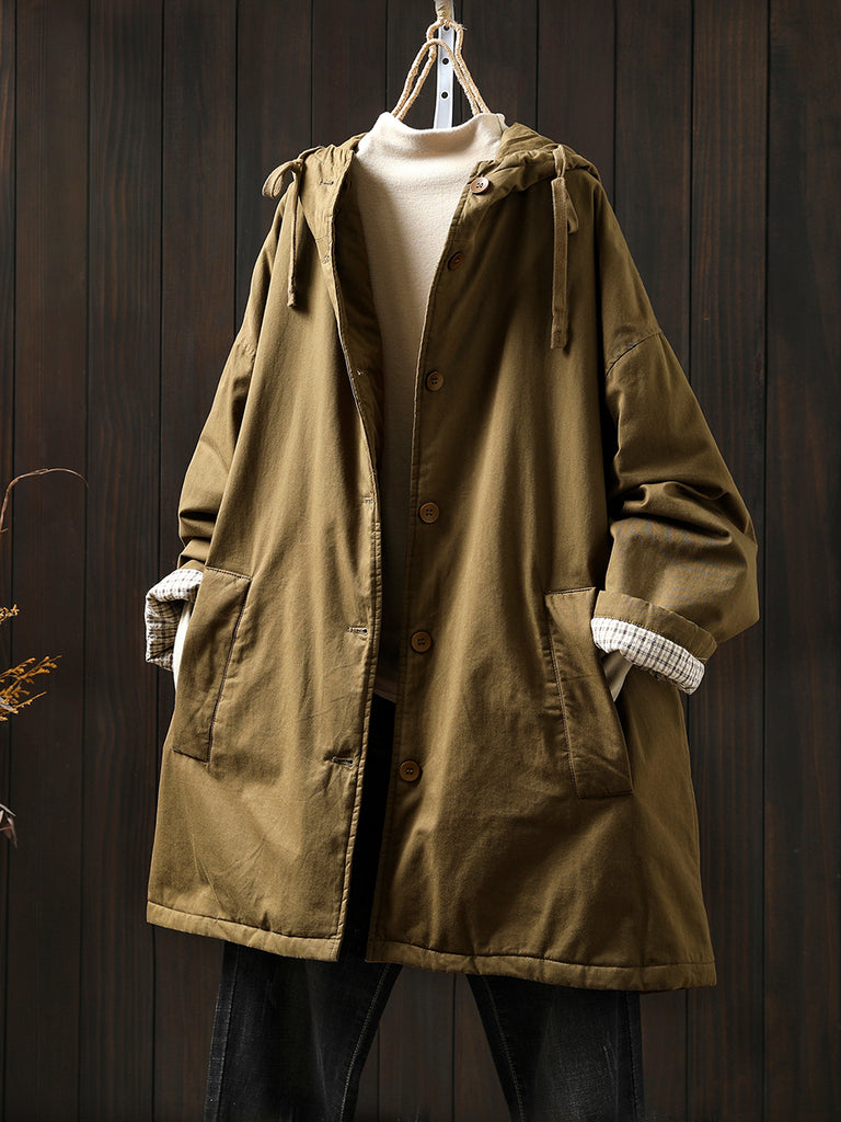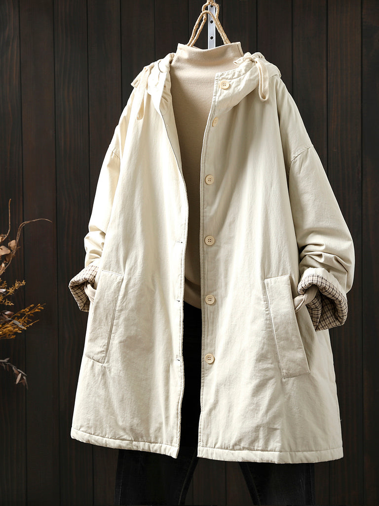 Vetrarfrakki úr hreinum lit fyrir konur með hettu
