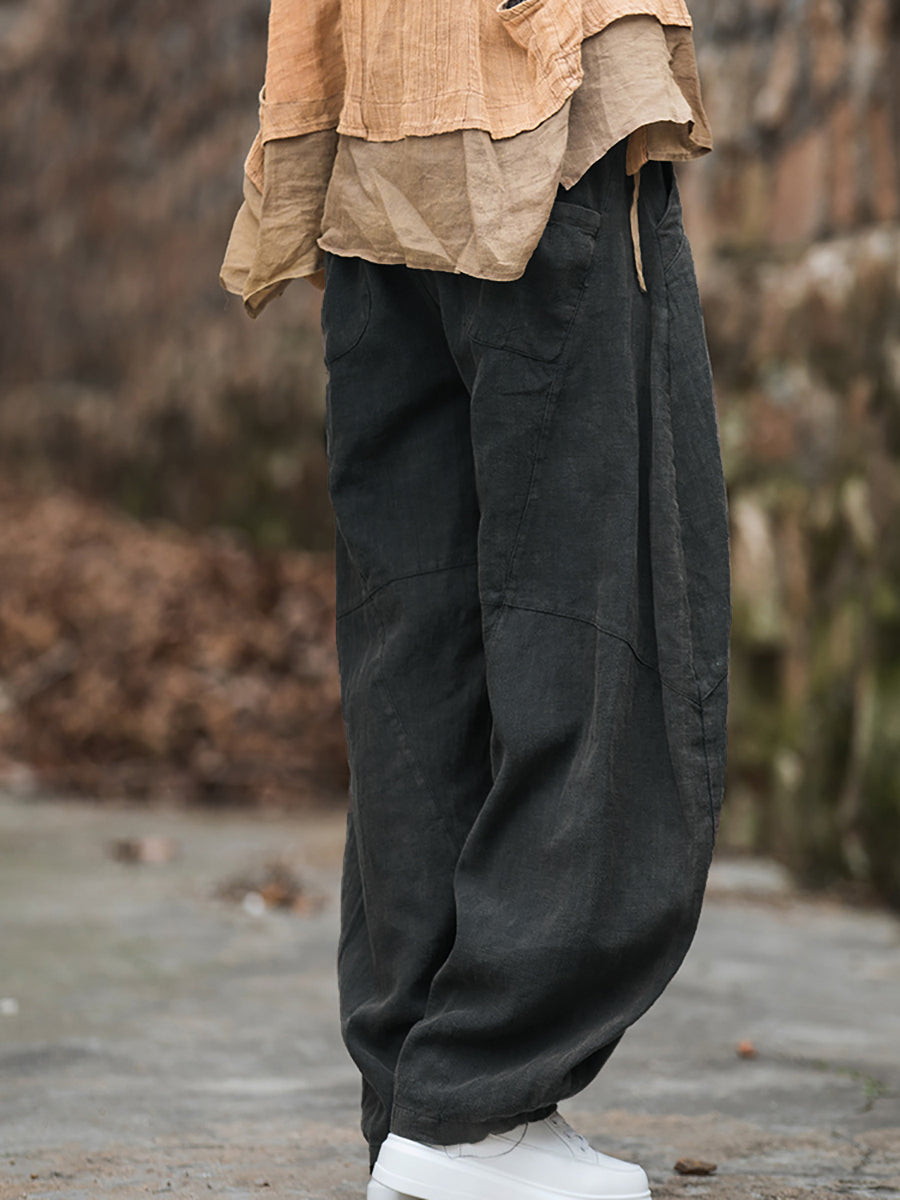 Kvenna vetrar Ramie flísfóðraðar Loose Harem buxur