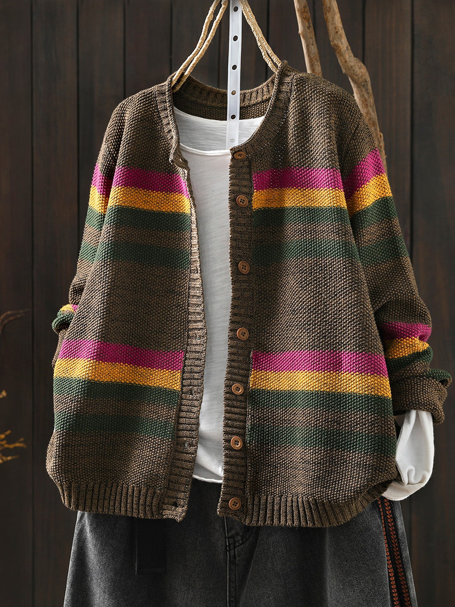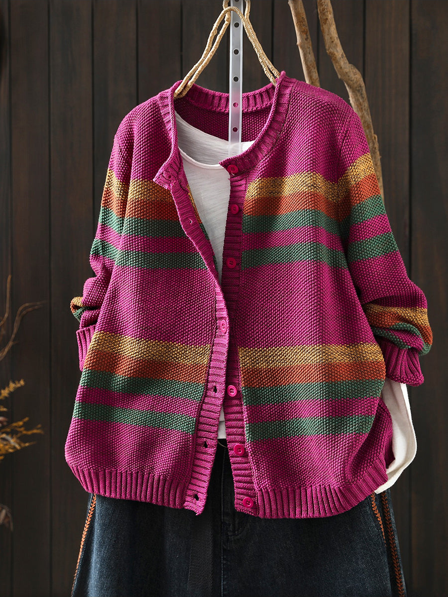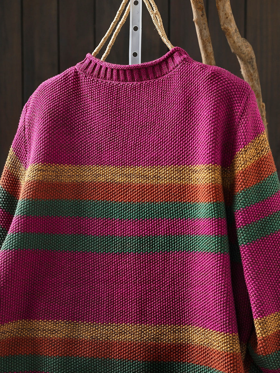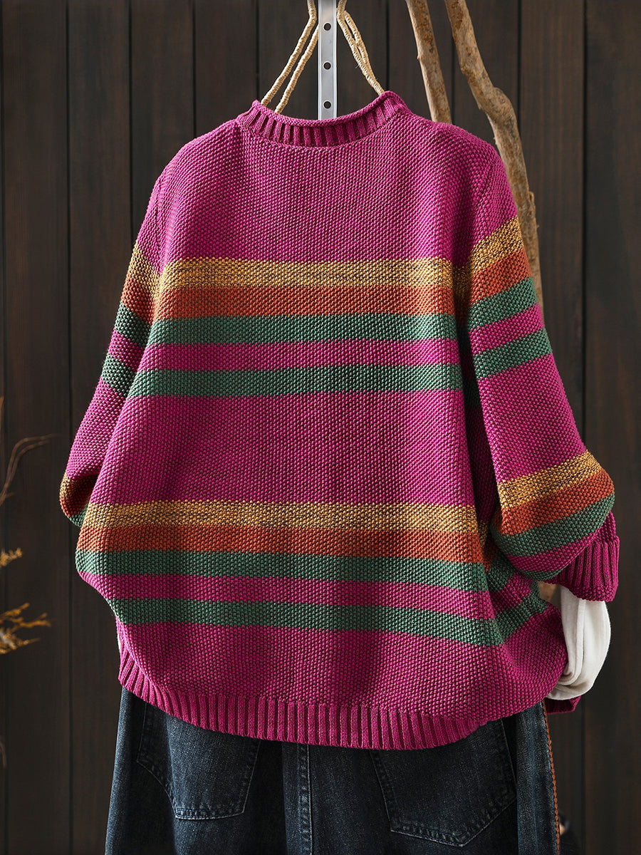 Vorpeysa með litablokk og röndóttum O-hálsmáli fyrir konur