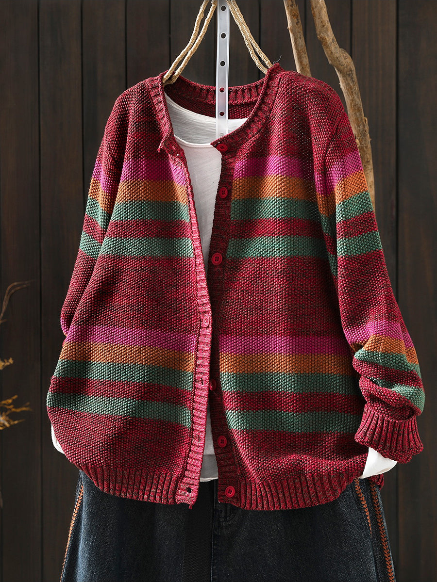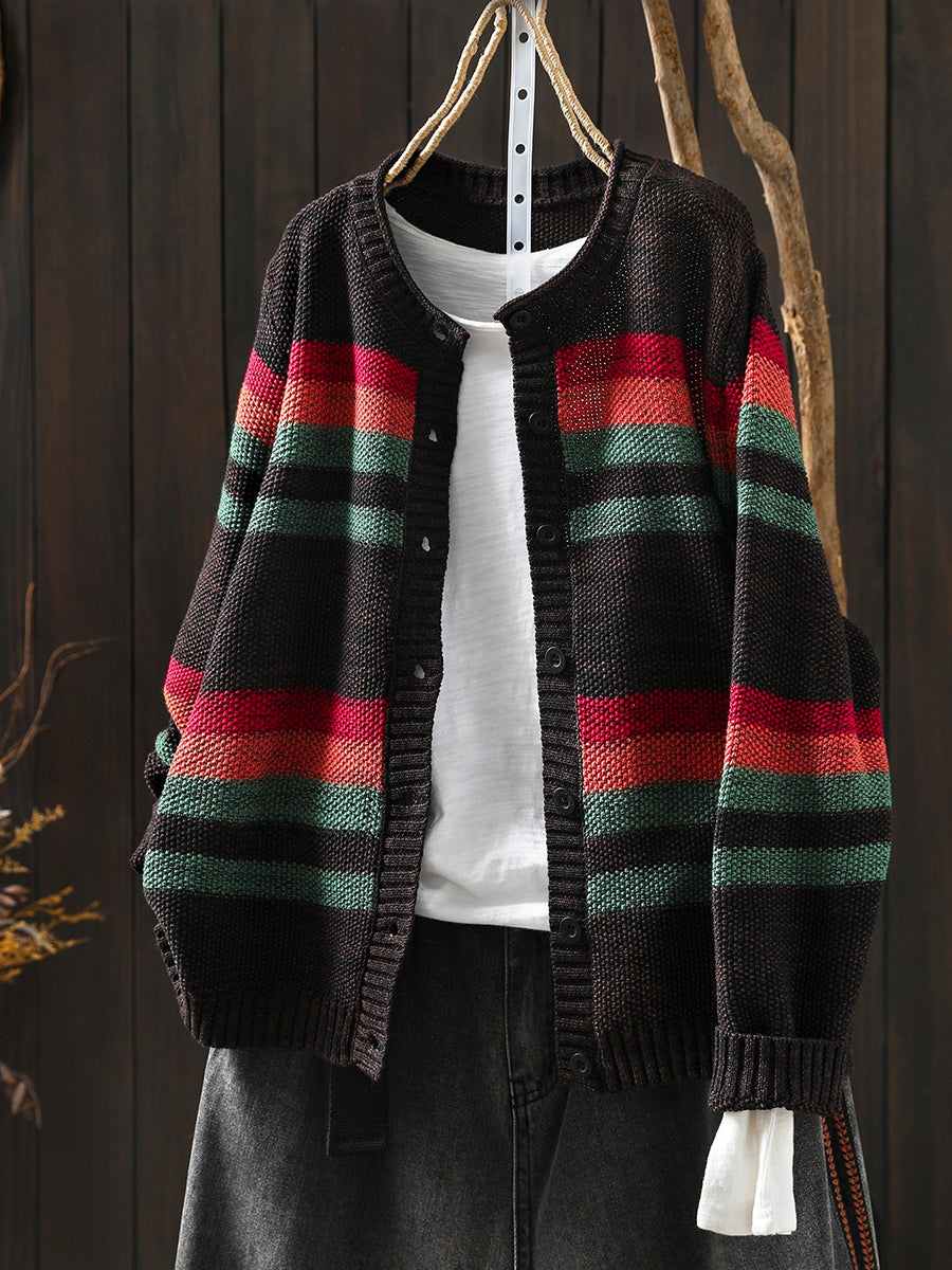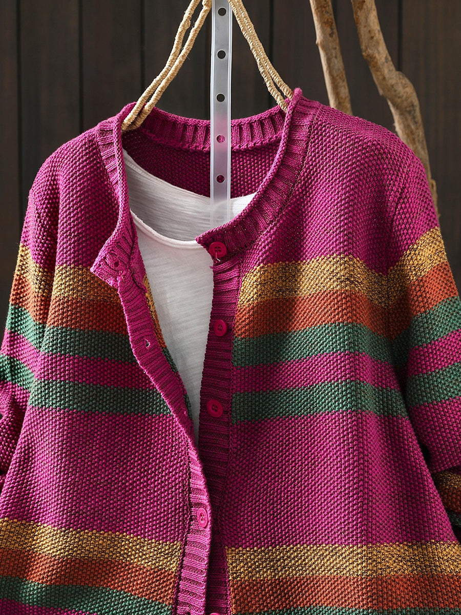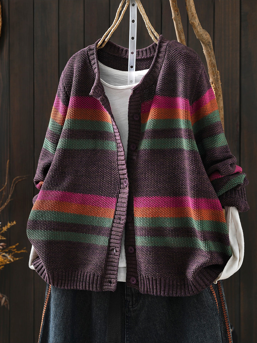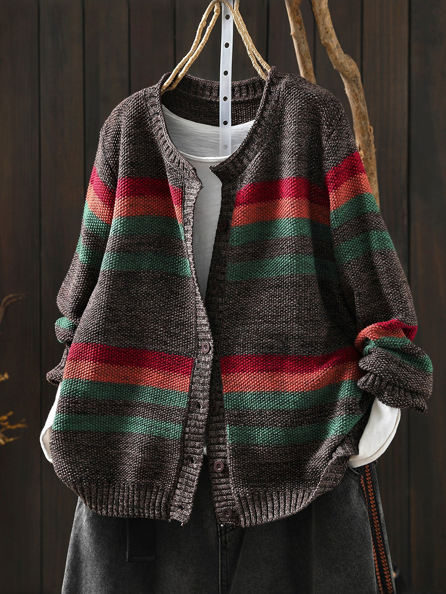 Vorpeysa með litablokk og röndóttum O-hálsmáli fyrir konur