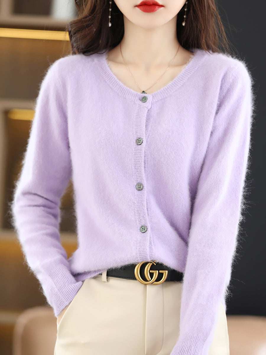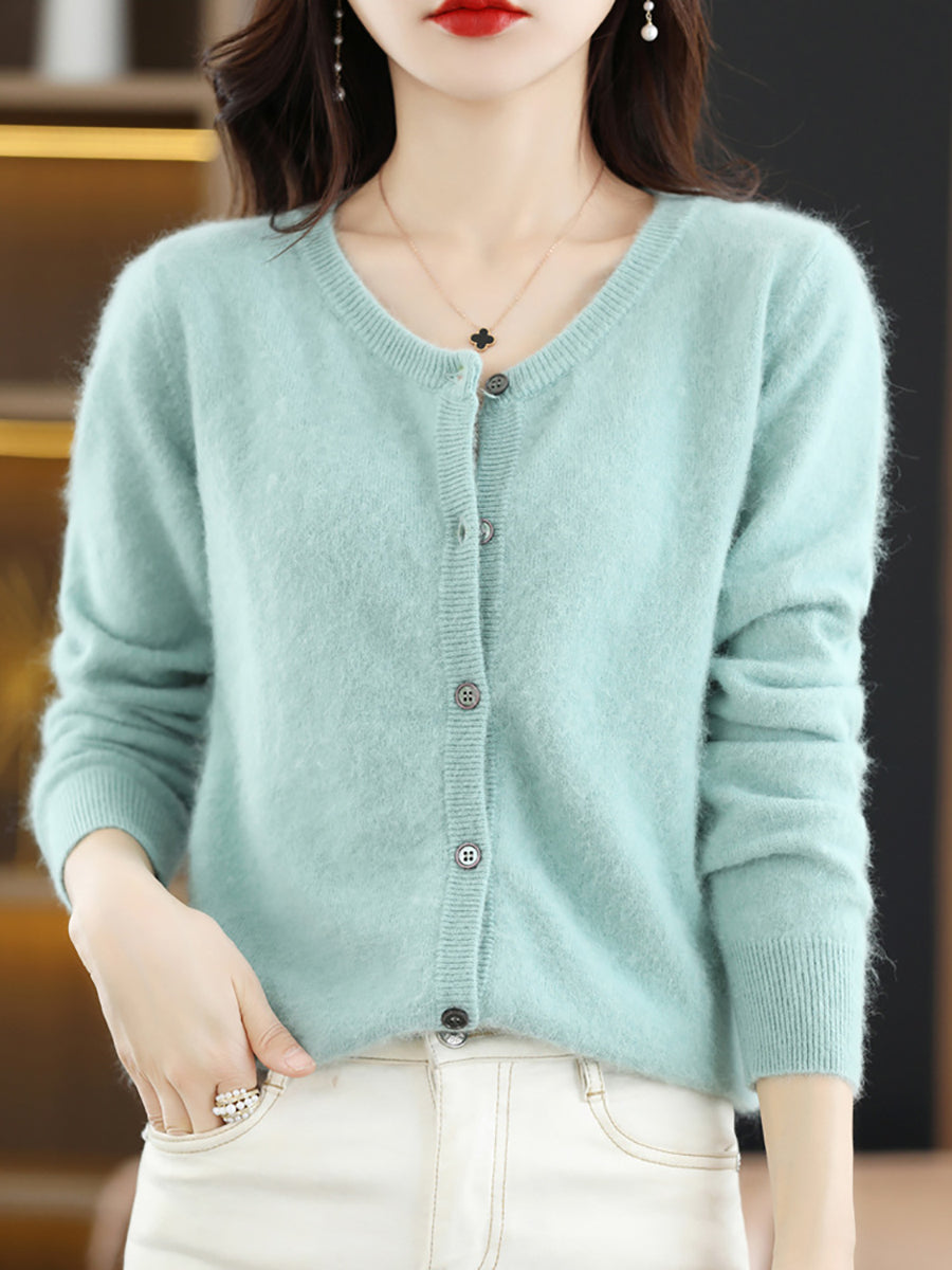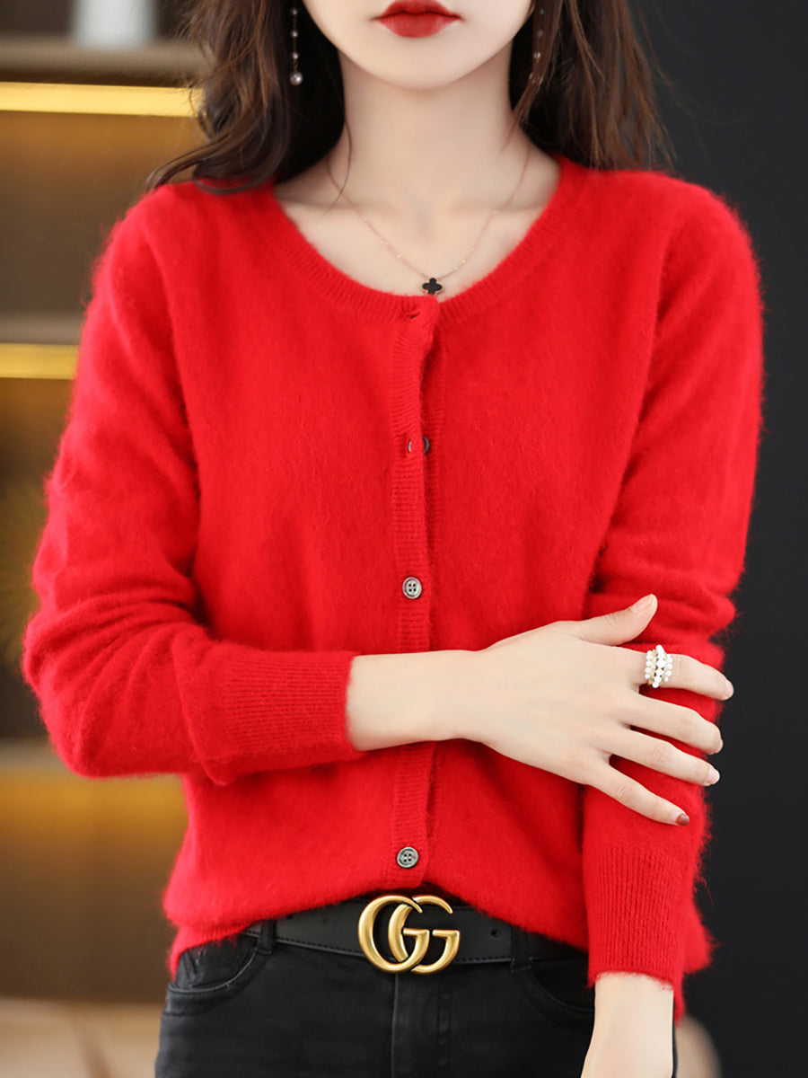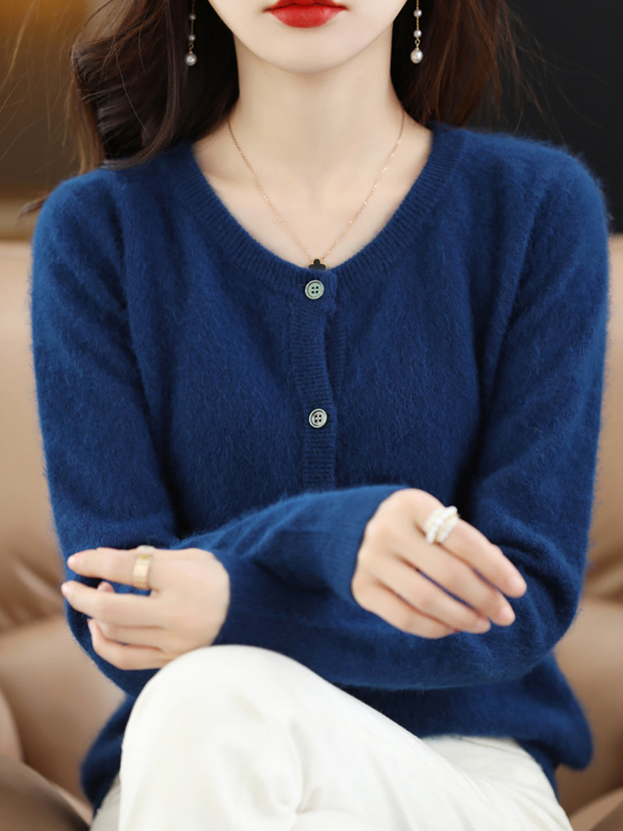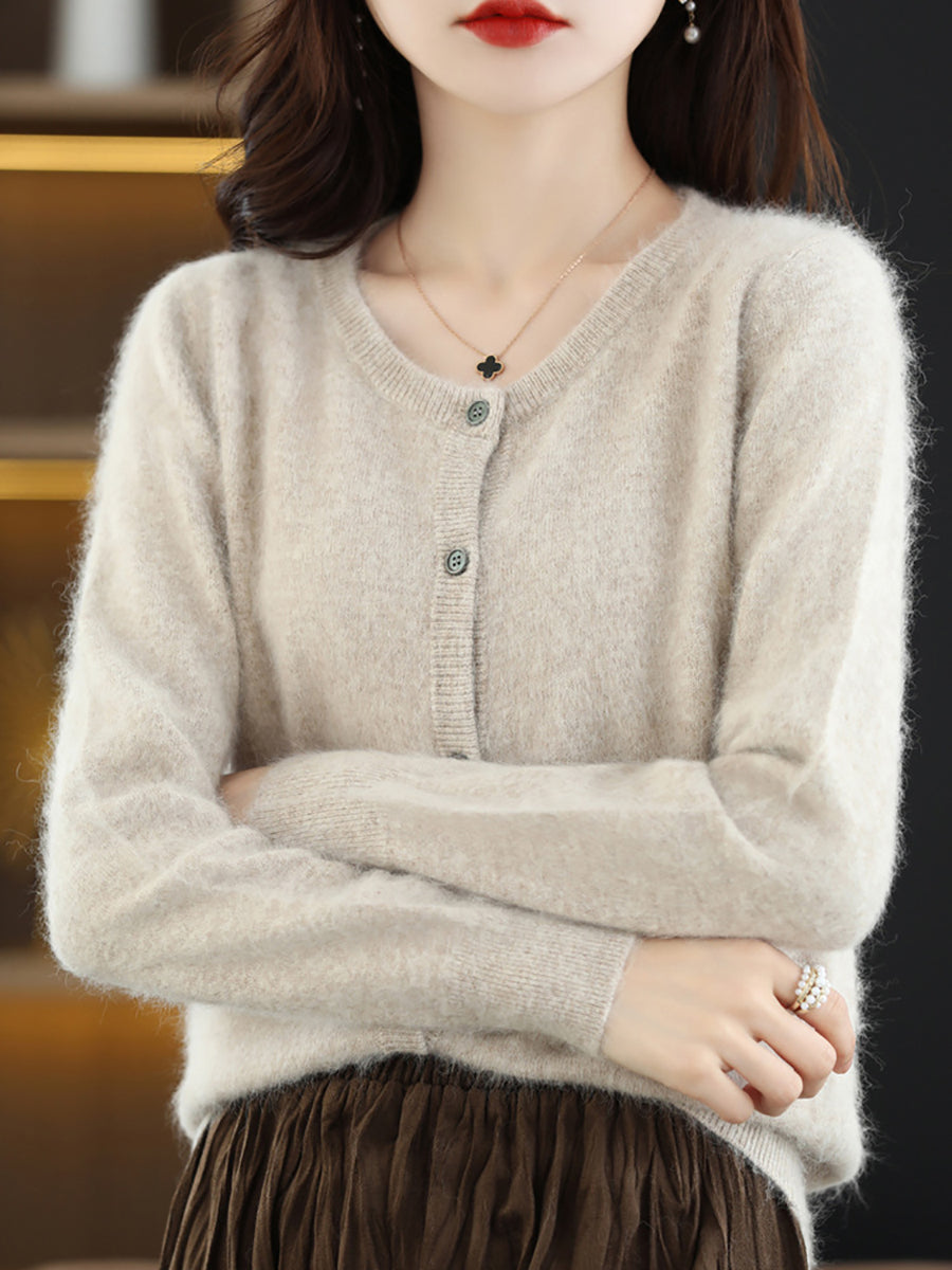 Haustlituð ullarpeysa fyrir konur með O-hálsmáli