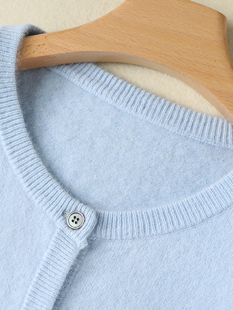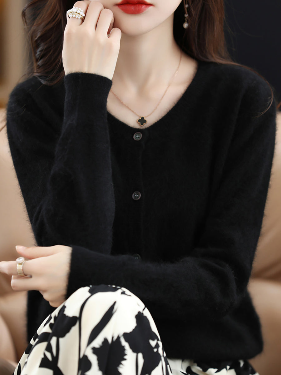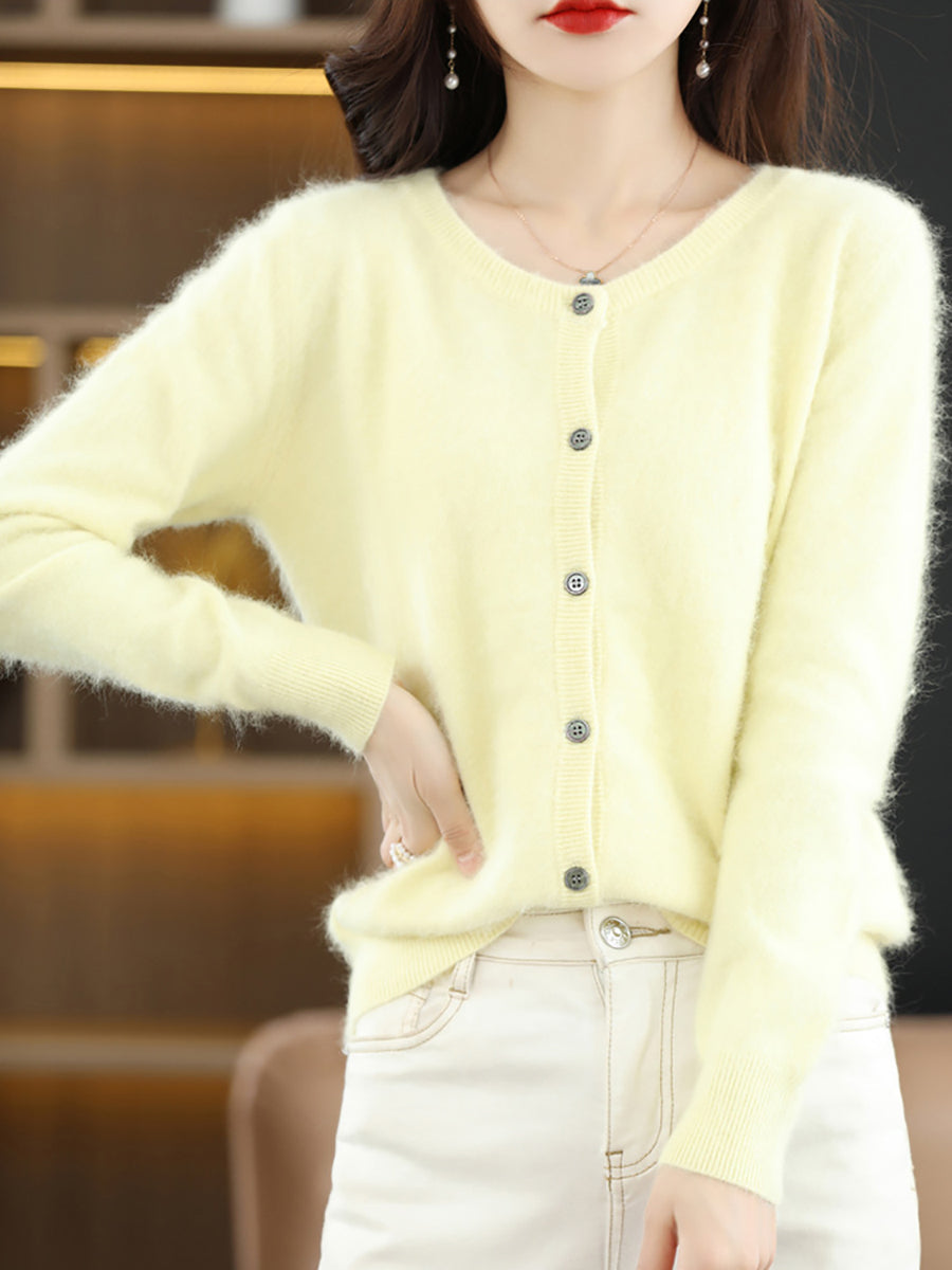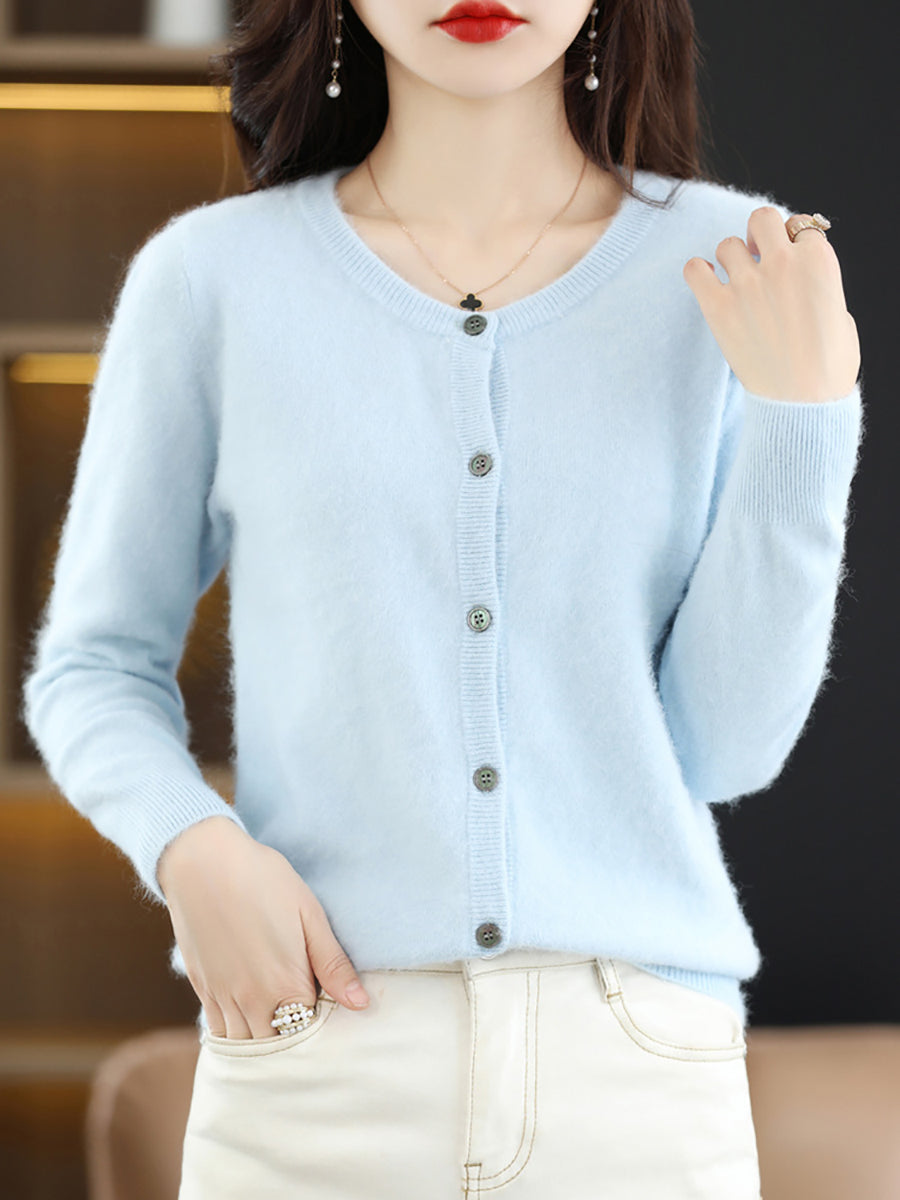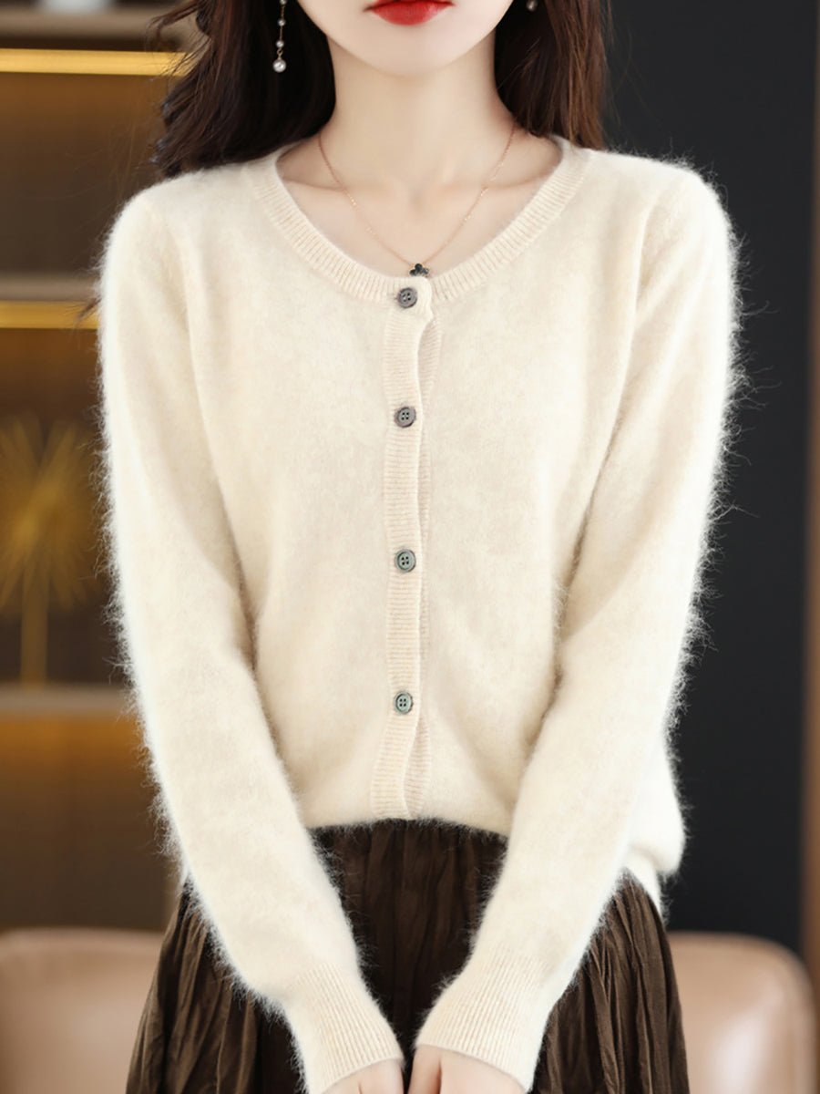 Haustlituð ullarpeysa fyrir konur með O-hálsmáli
