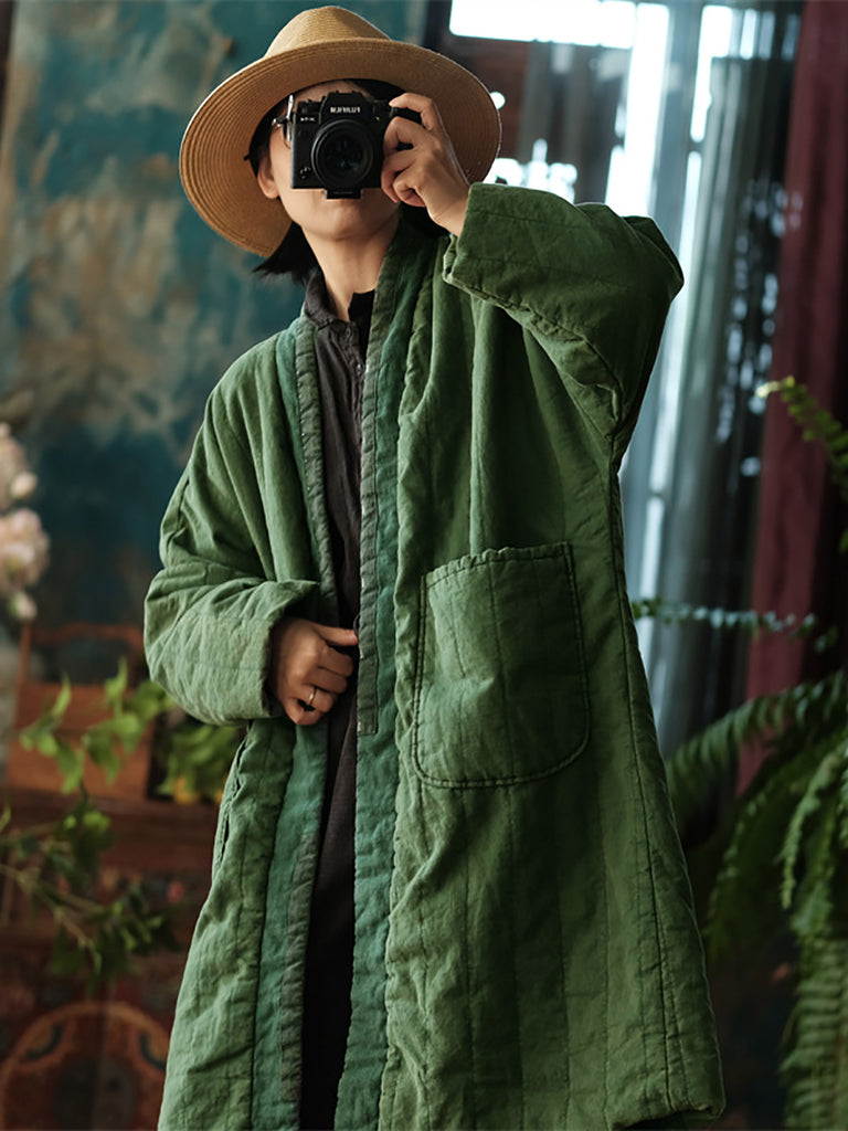 Kvenna vetrar Vintage Colorblock Pocket Cotton Long Coat