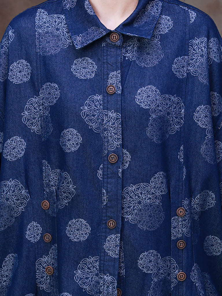 Kvenna Streetwear prentuð denim löng kápa