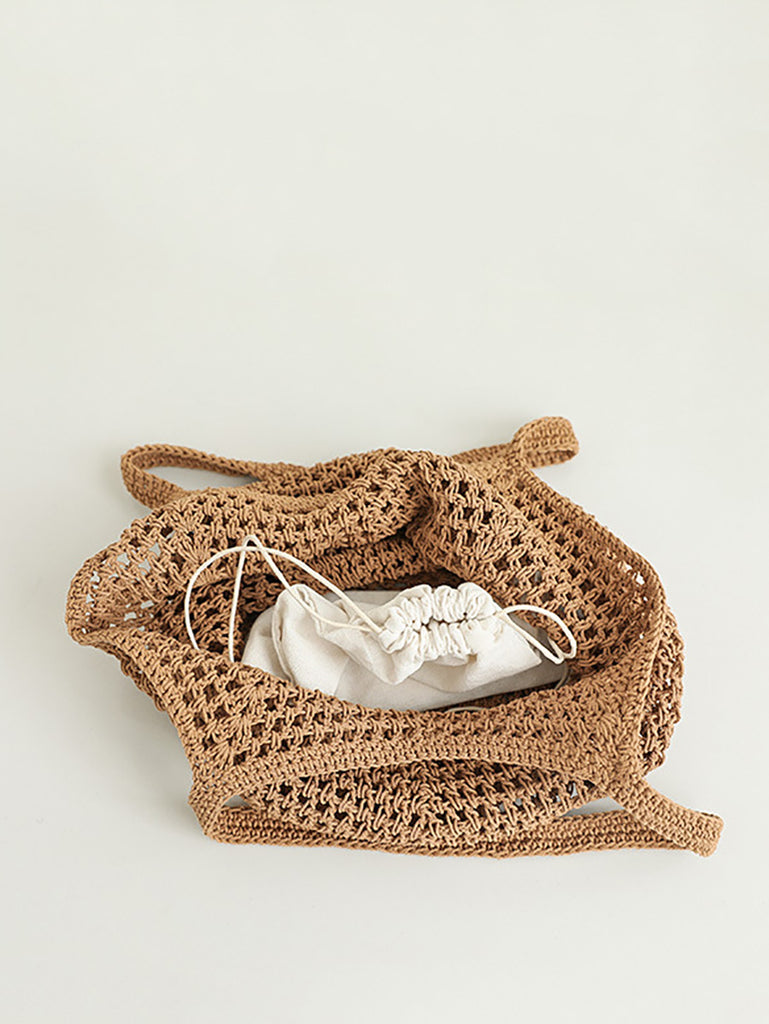 Kvenna sumar Artsy Cutout Prjónuð öxlpoki