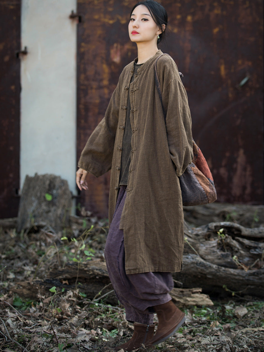 Kvenna Vintage Spring Solid Langskyrtu Kápa