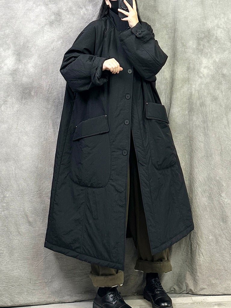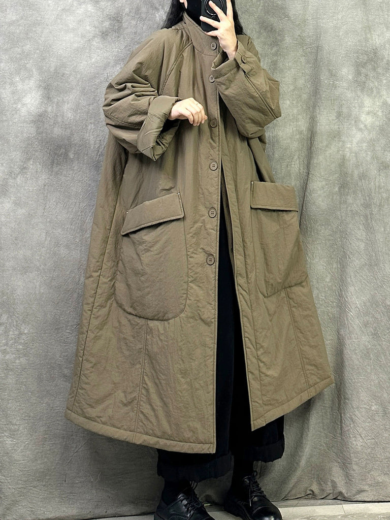 Konur haust frjálslegur hreinn litur standkraga langur kápa