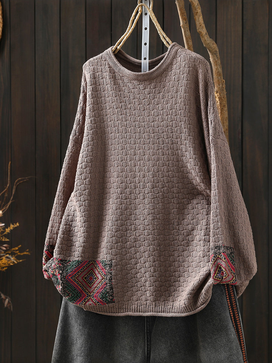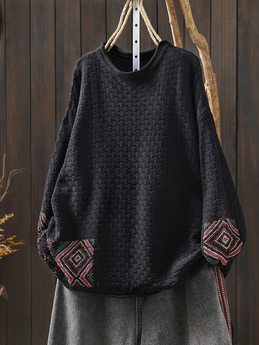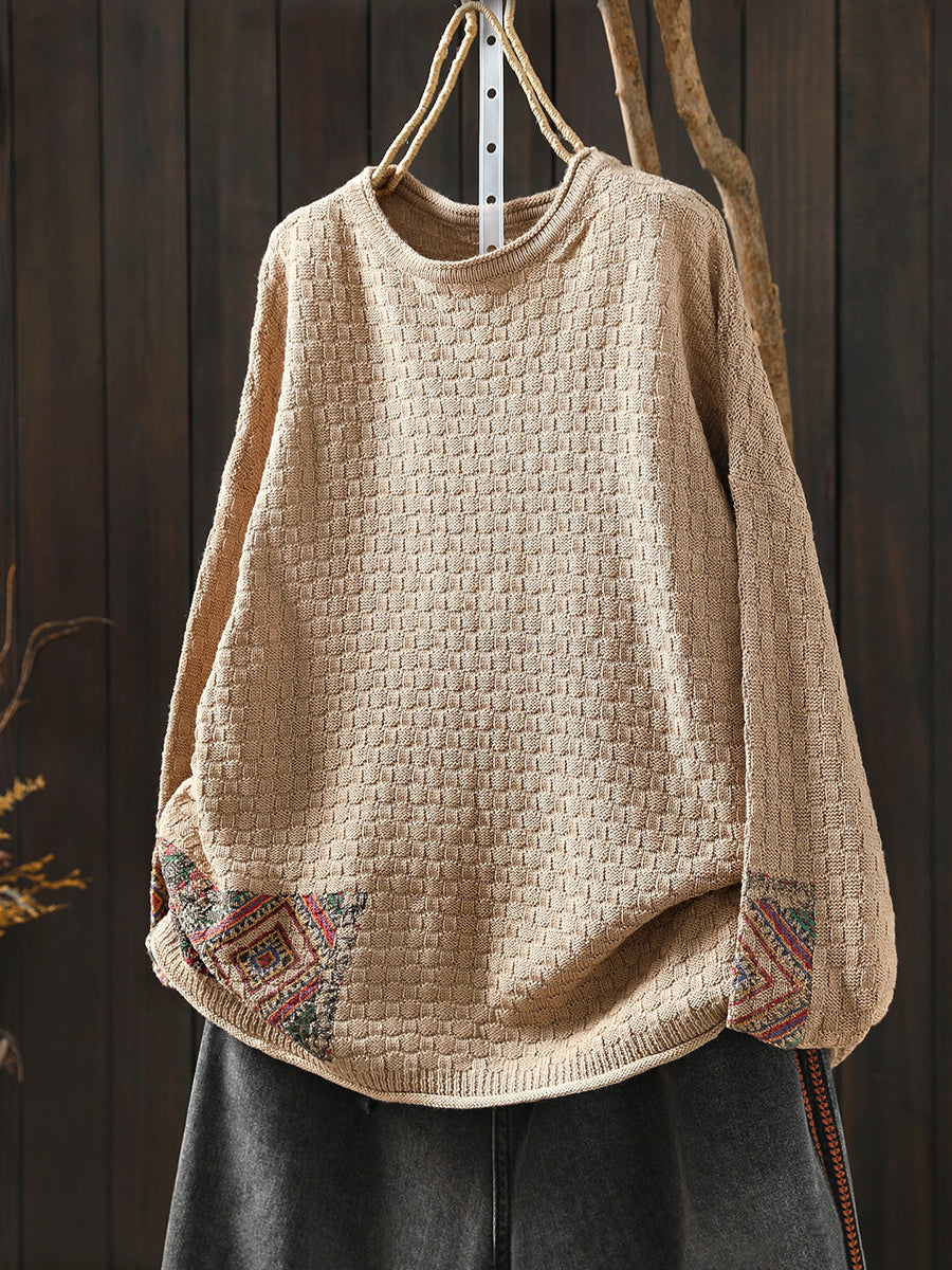 Haustpeysa fyrir konur með prjónaðri O-hálsmáli