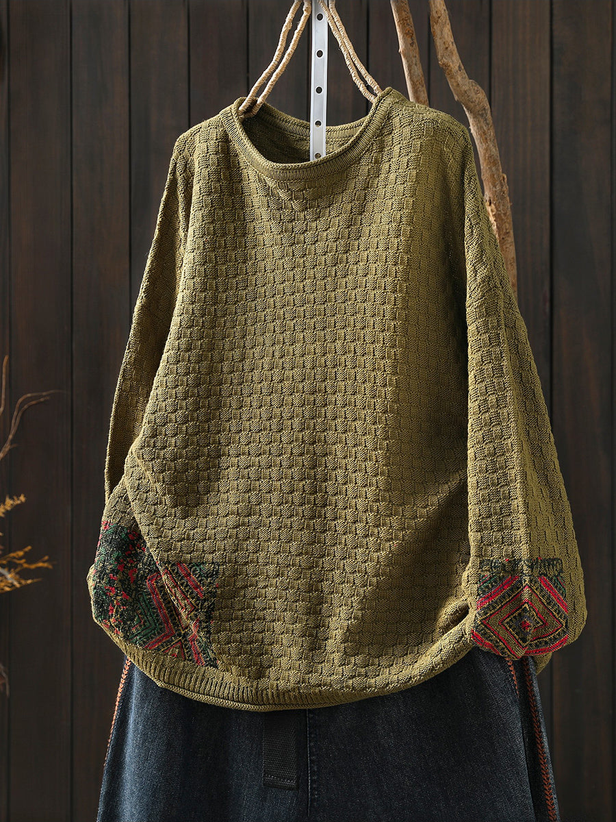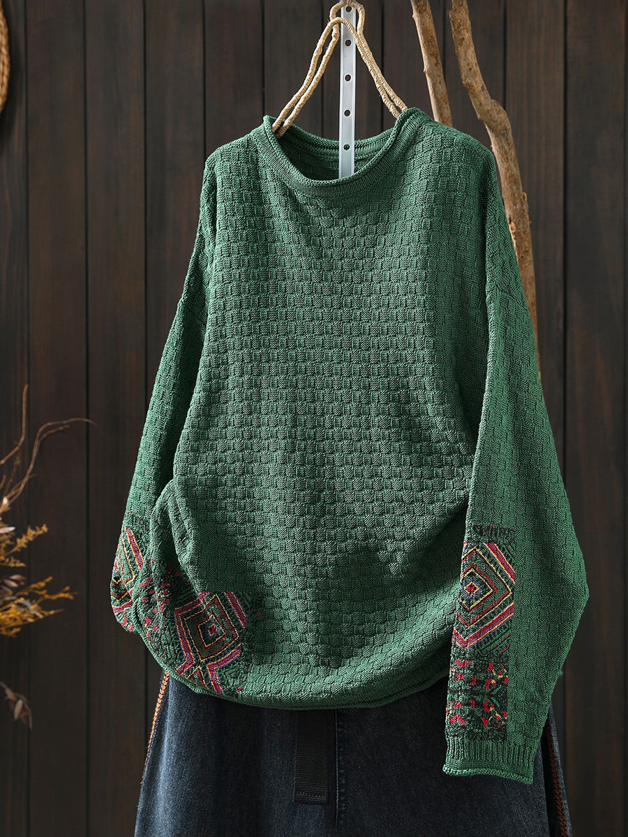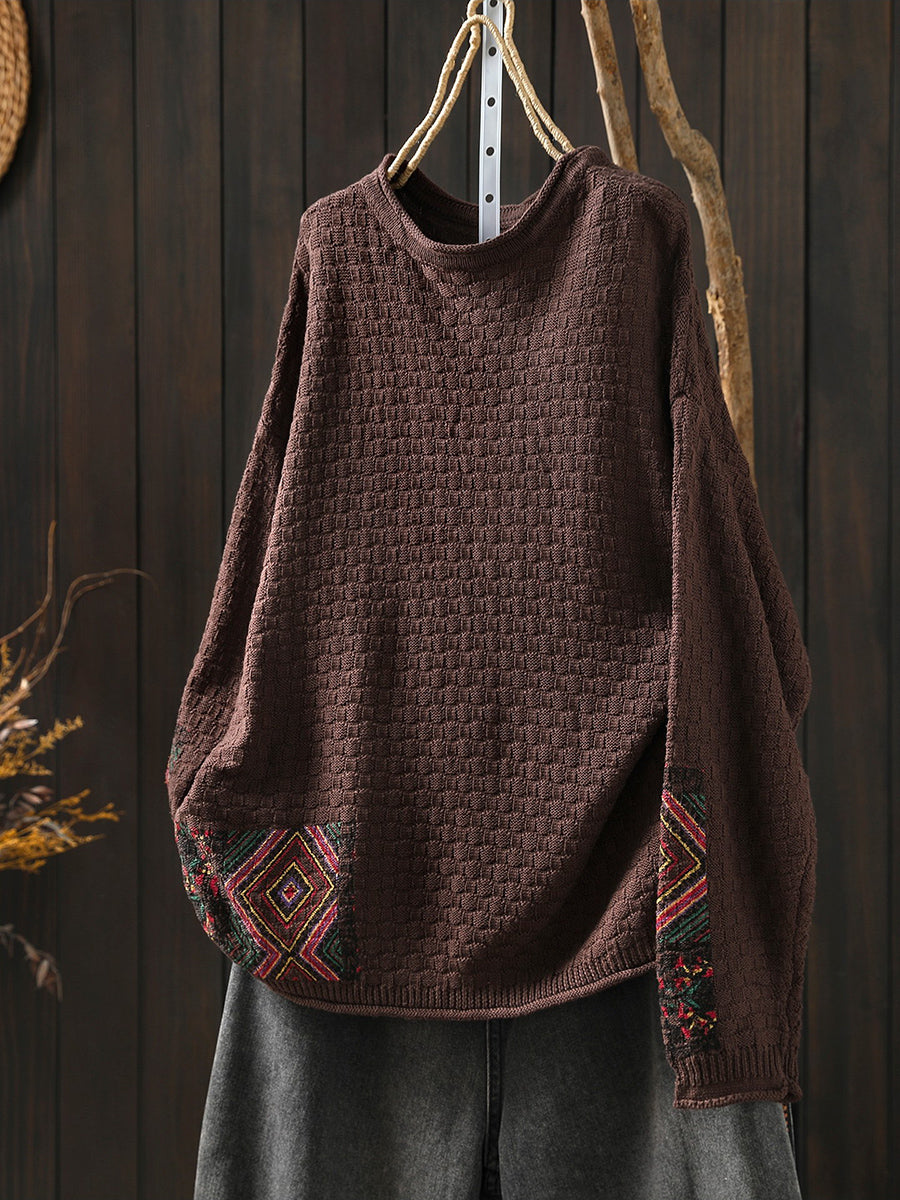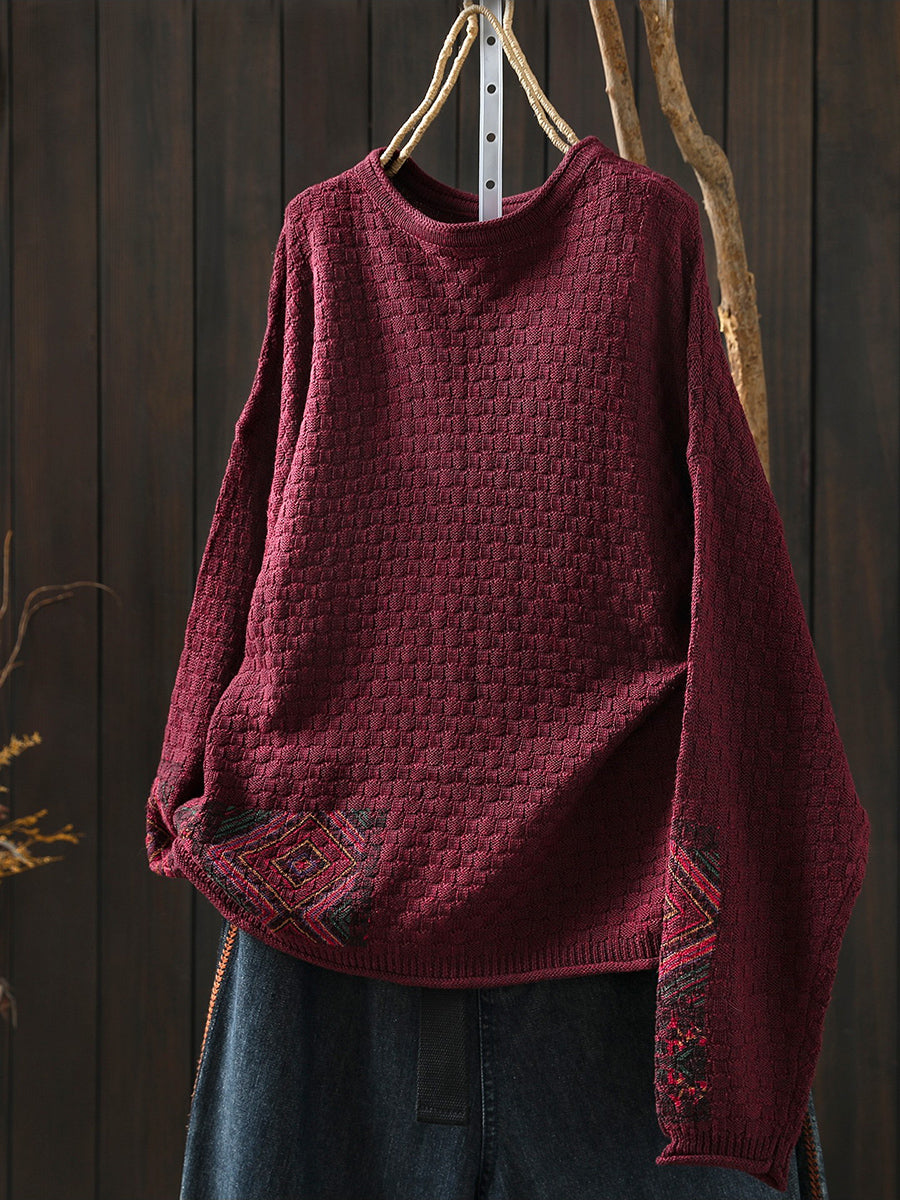 Haustpeysa fyrir konur með prjónaðri O-hálsmáli