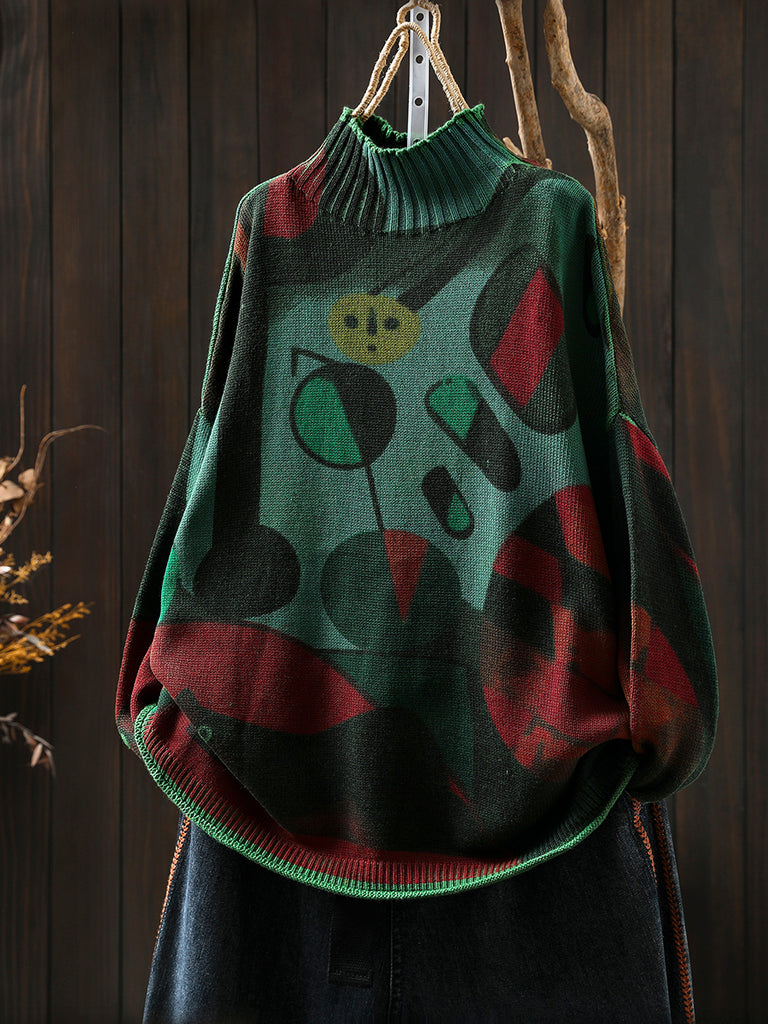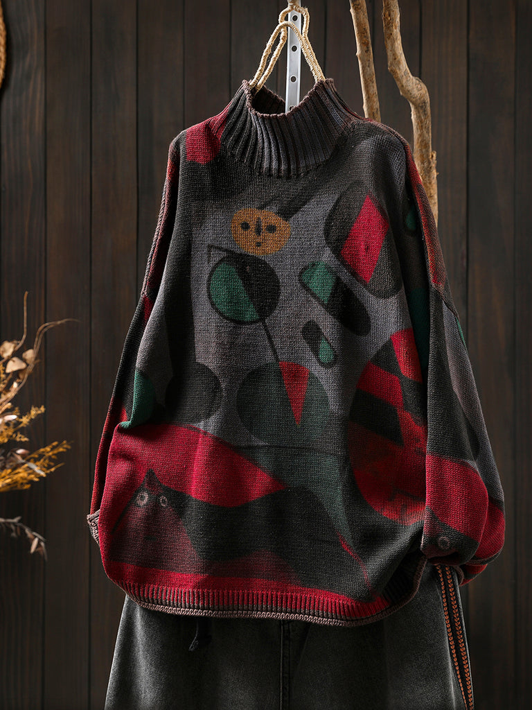 Haustpeysa fyrir konur með vintage-mynstri og hálfum hálsmáli