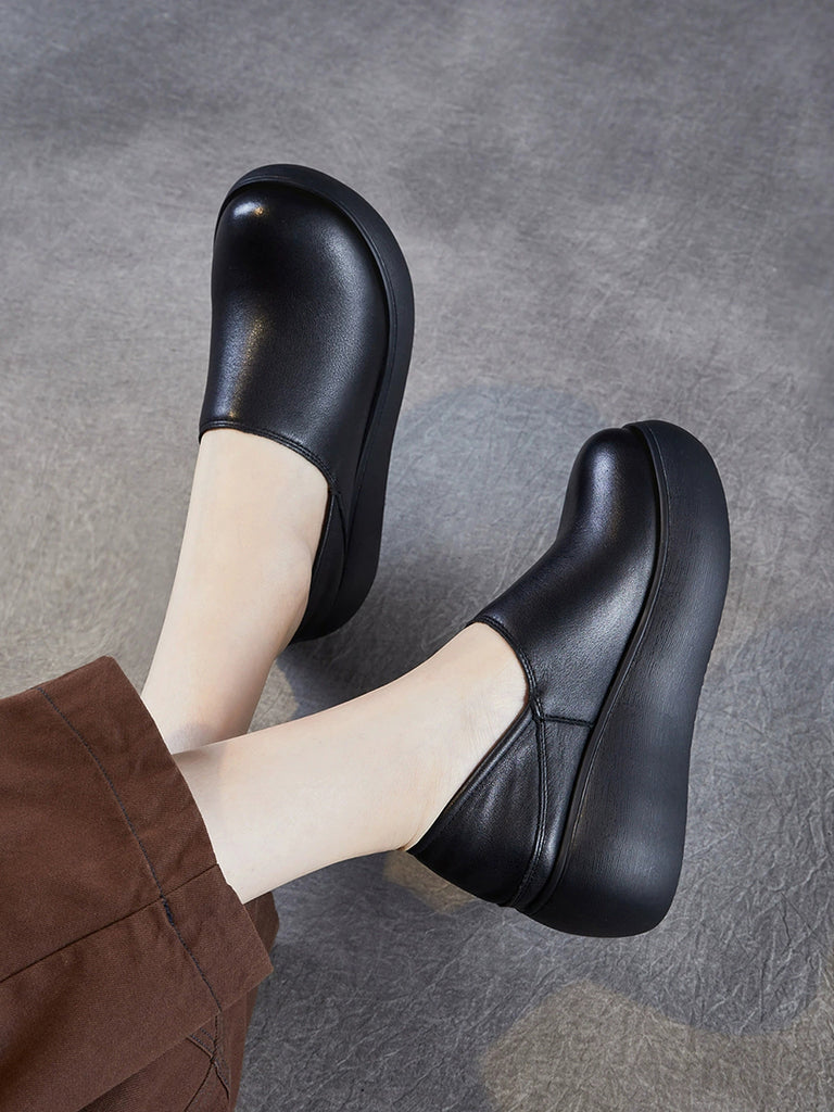 Konur úr ekta leðri, hreinum lit, platfrá skóm