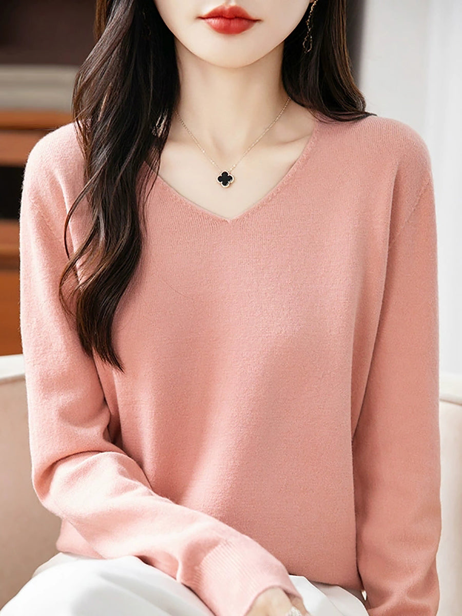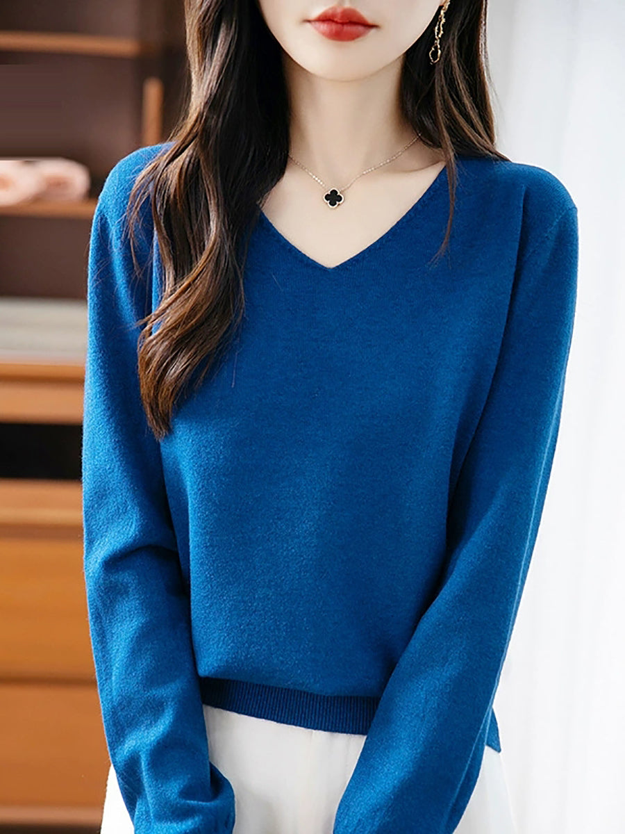 Vorpeysa með V-hálsmáli fyrir konur, frjálslegur og hreinn litur