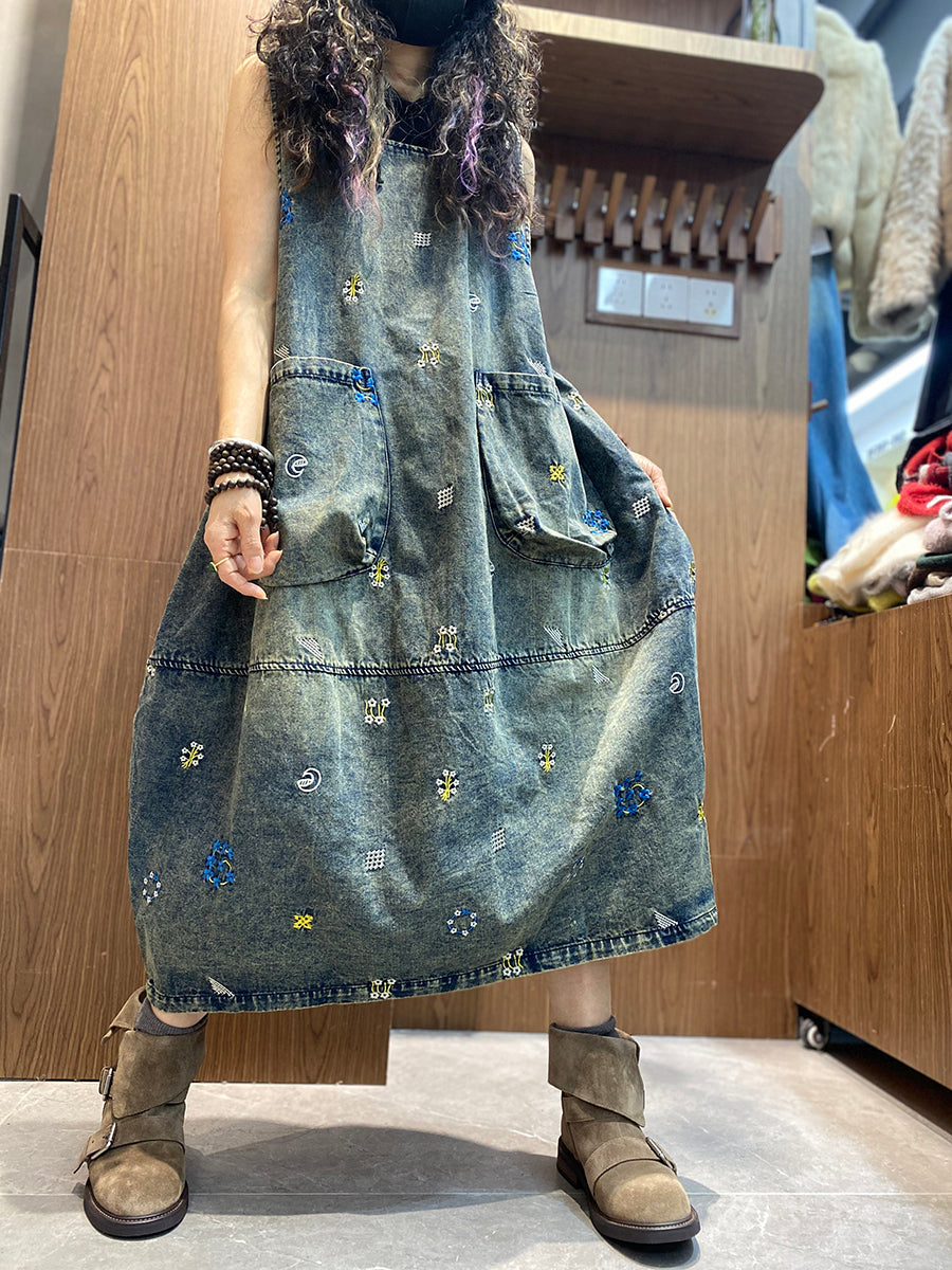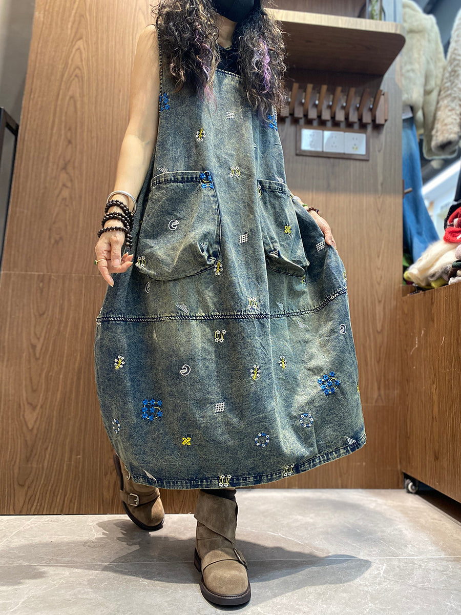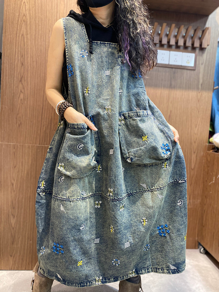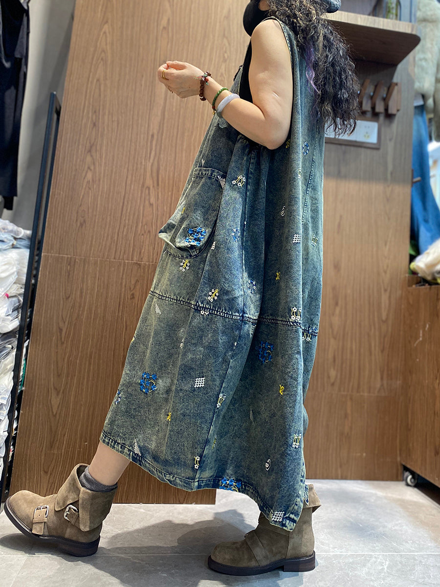 Vorkjóll fyrir konur með blómaútsaumi í retro-stíl