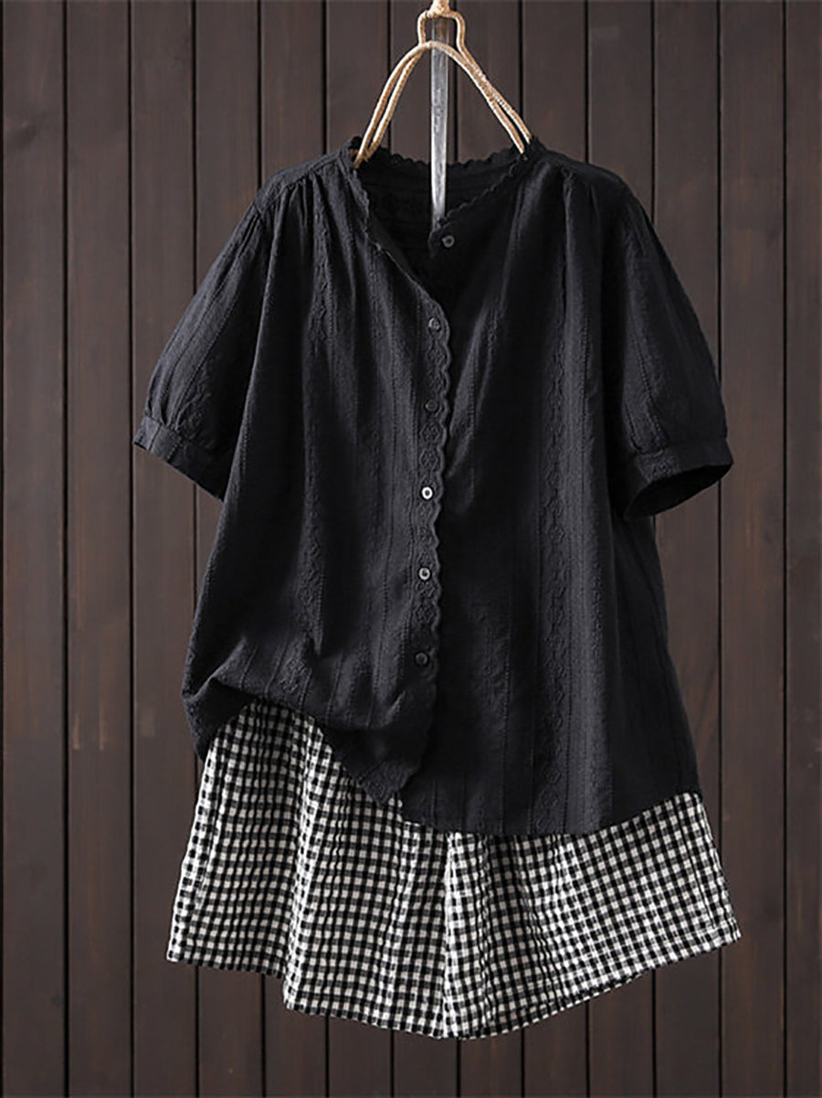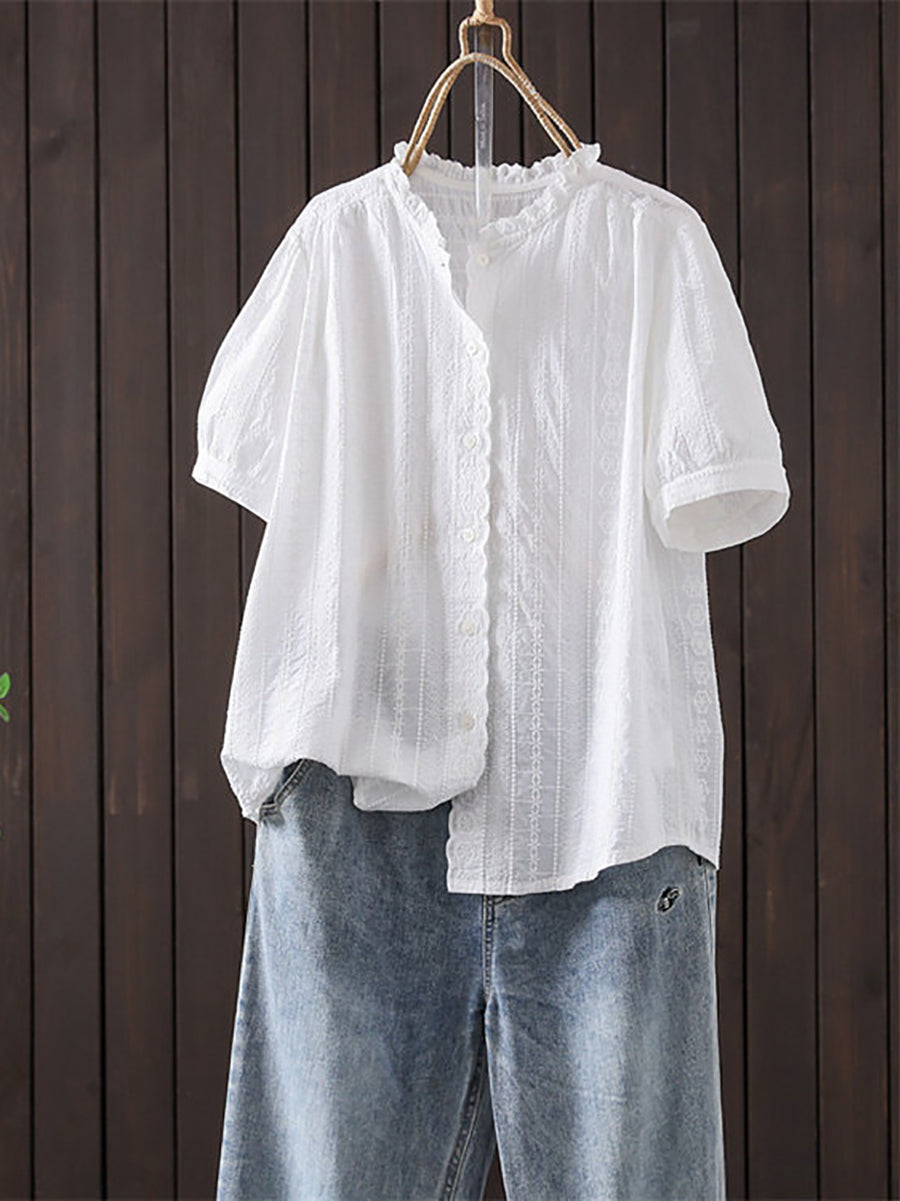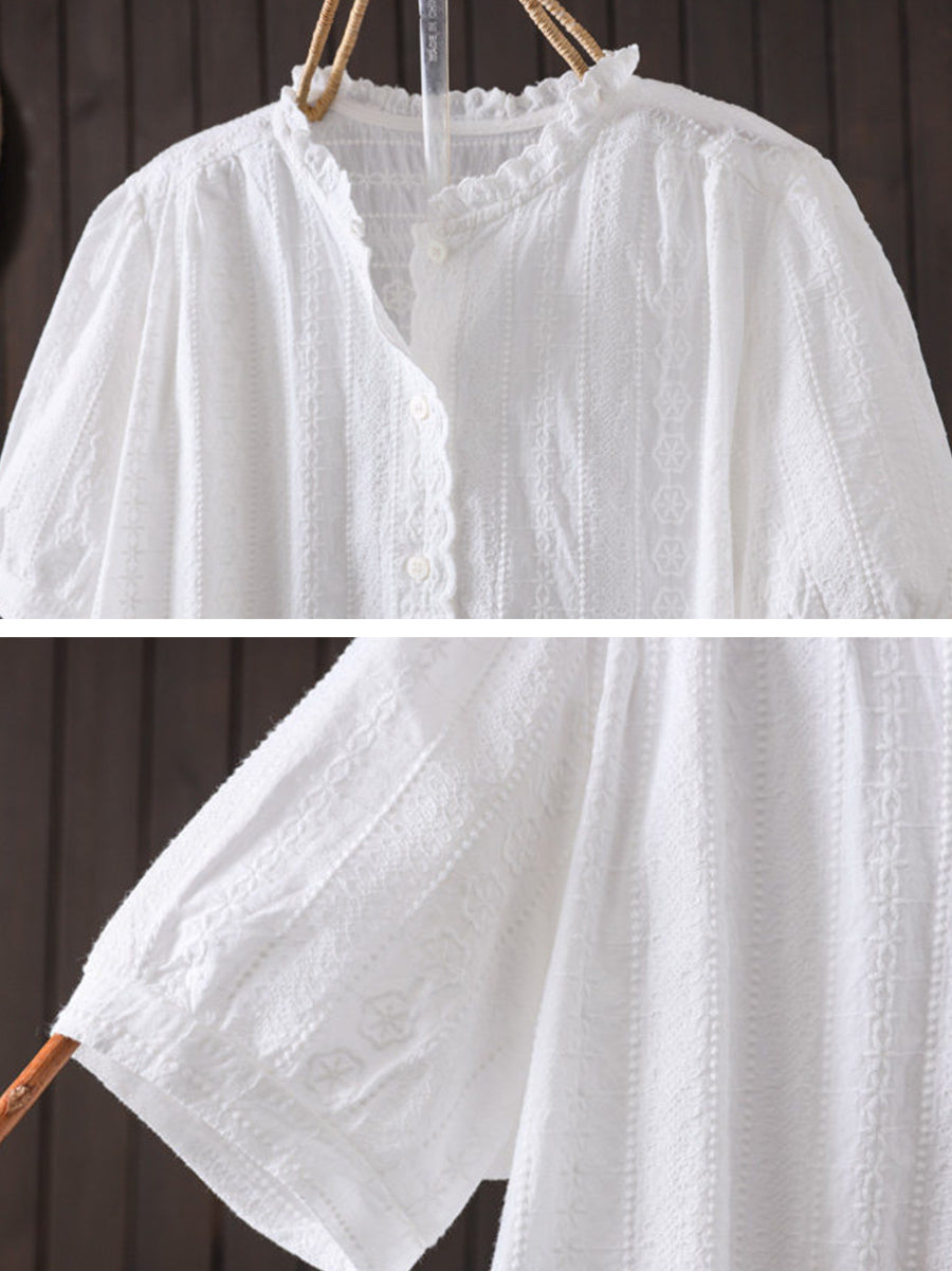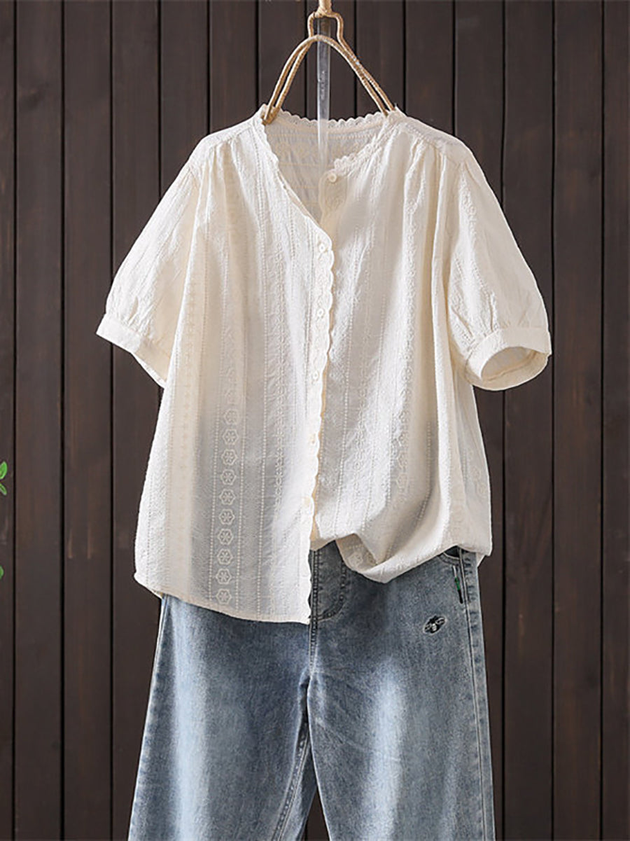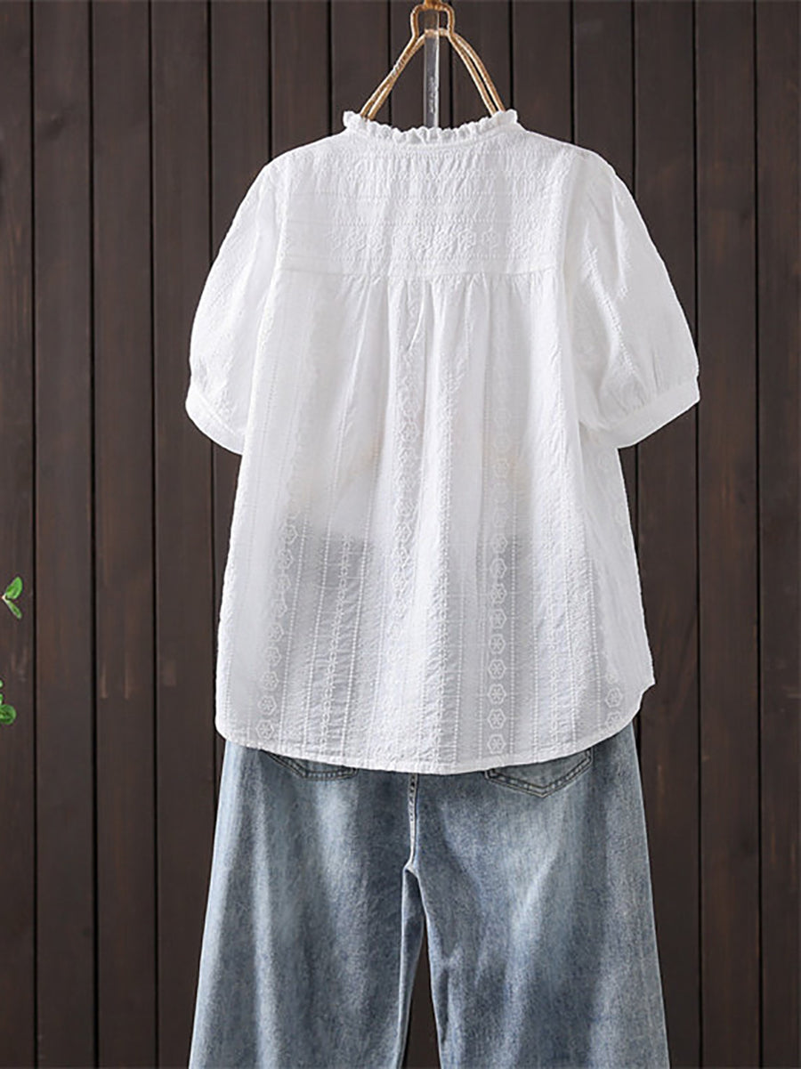 Sumarblússa fyrir konur úr listrænum útsaumi úr 100% bómullarefni