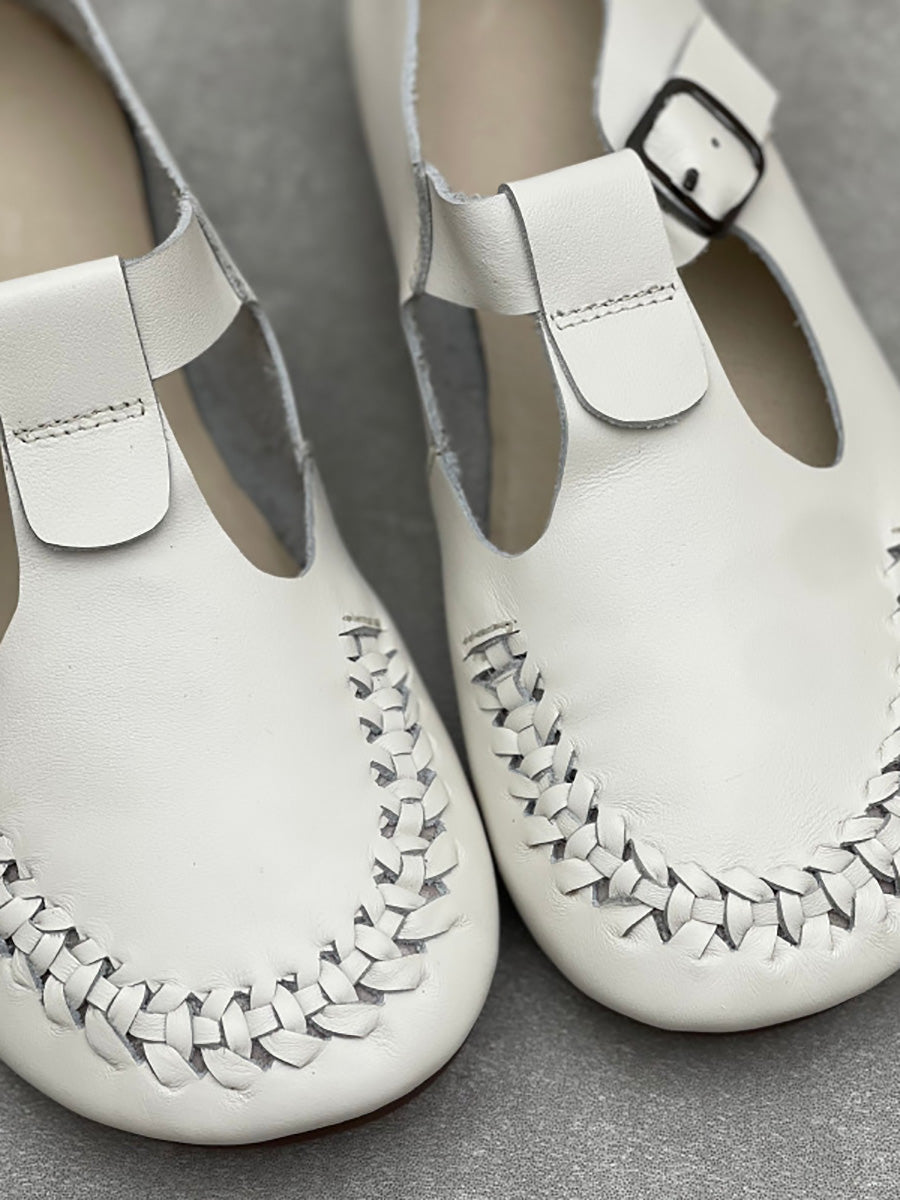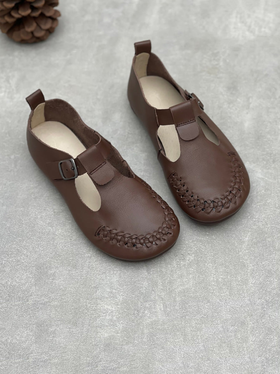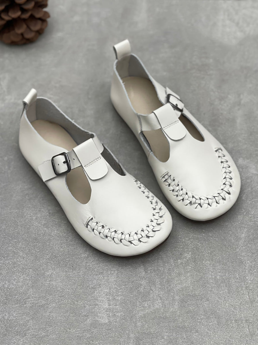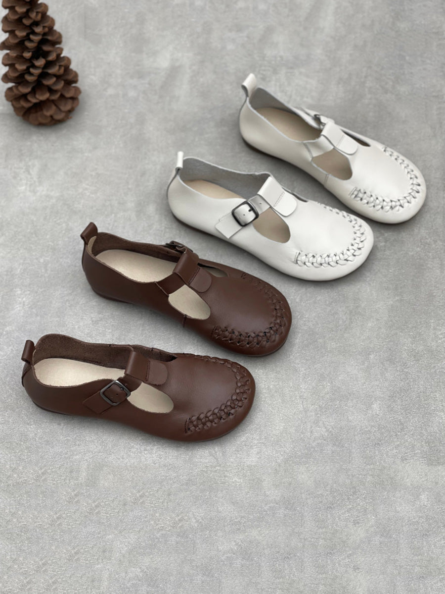 Sumar frjálslegur skór úr ekta leðri fyrir konur með lágum hælum