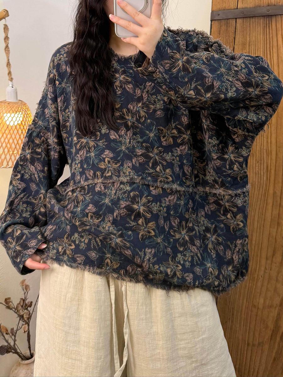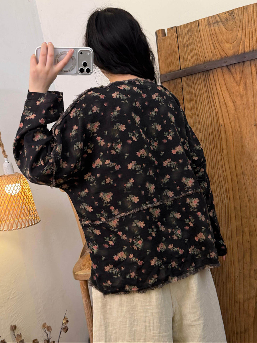 Kvenblússa úr vintage-hálsi með blómum og spliced blómum