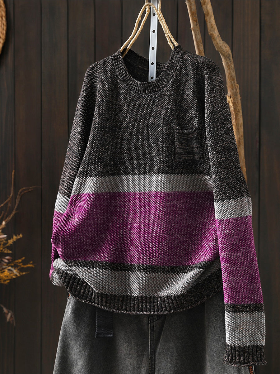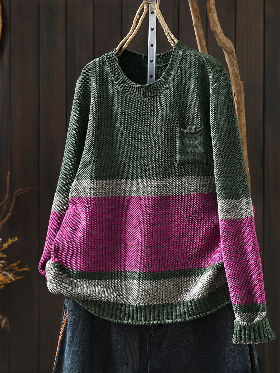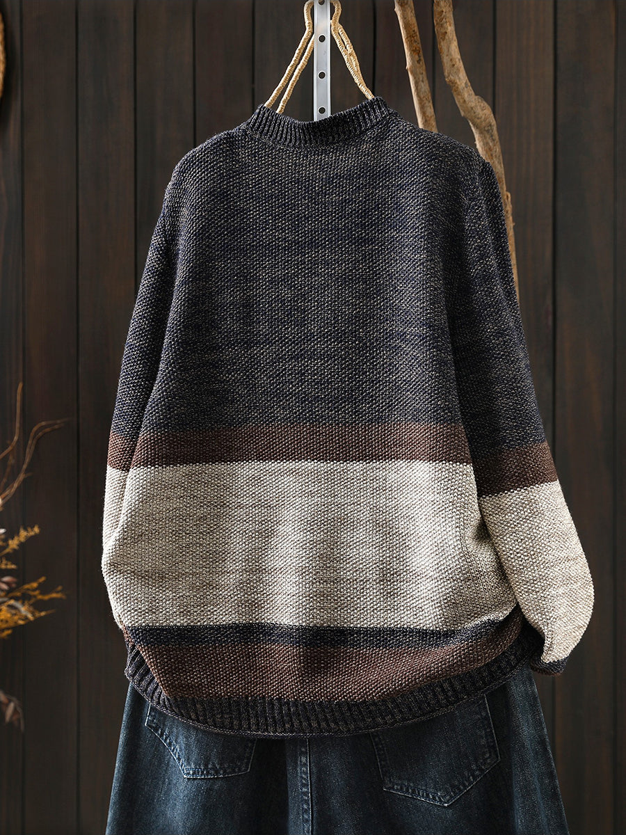 Vetrarfrí peysa með litablokk og O-hálsmáli fyrir konur