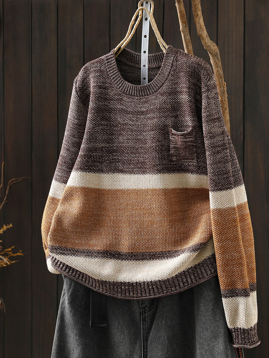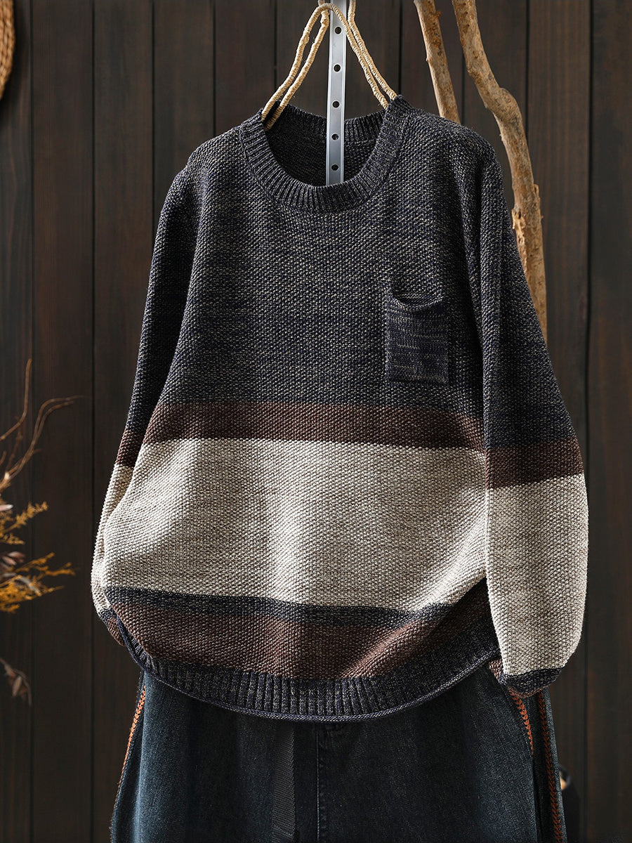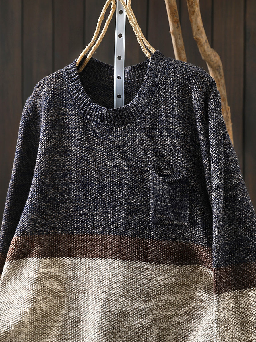 Vetrarfrí peysa með litablokk og O-hálsmáli fyrir konur