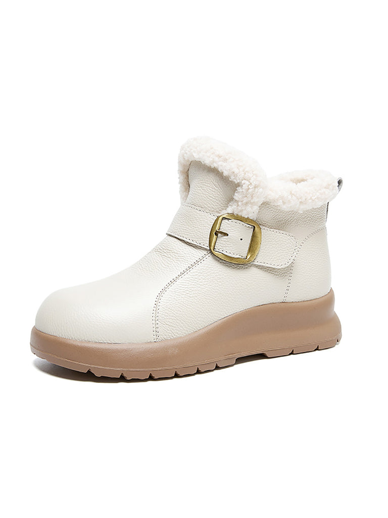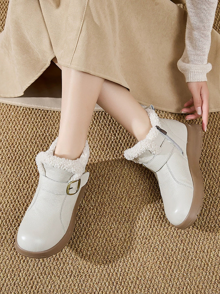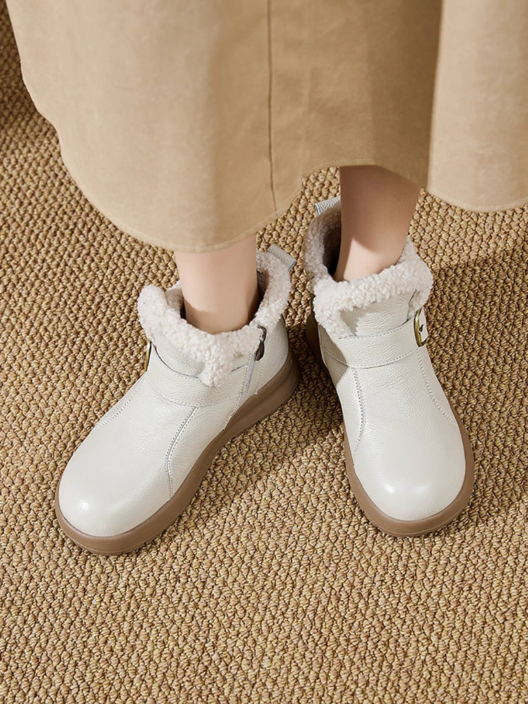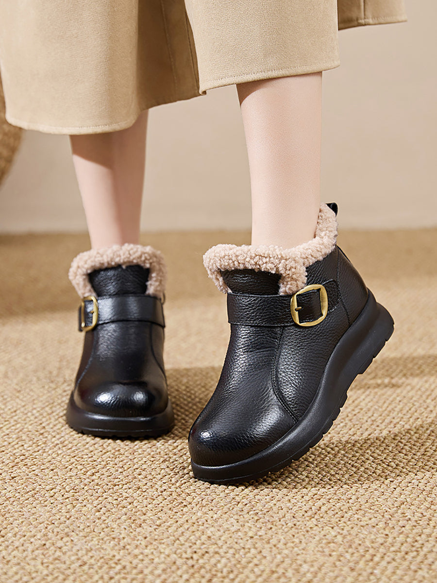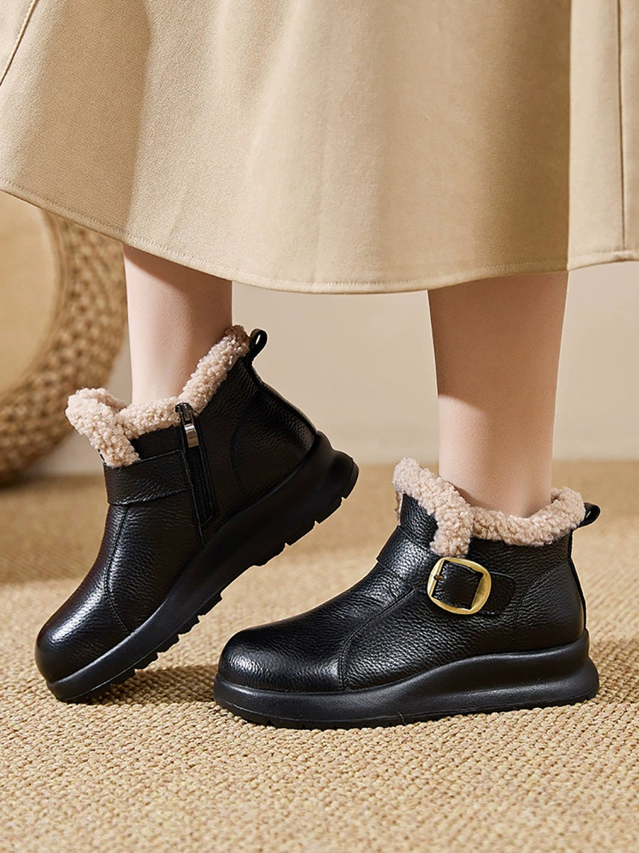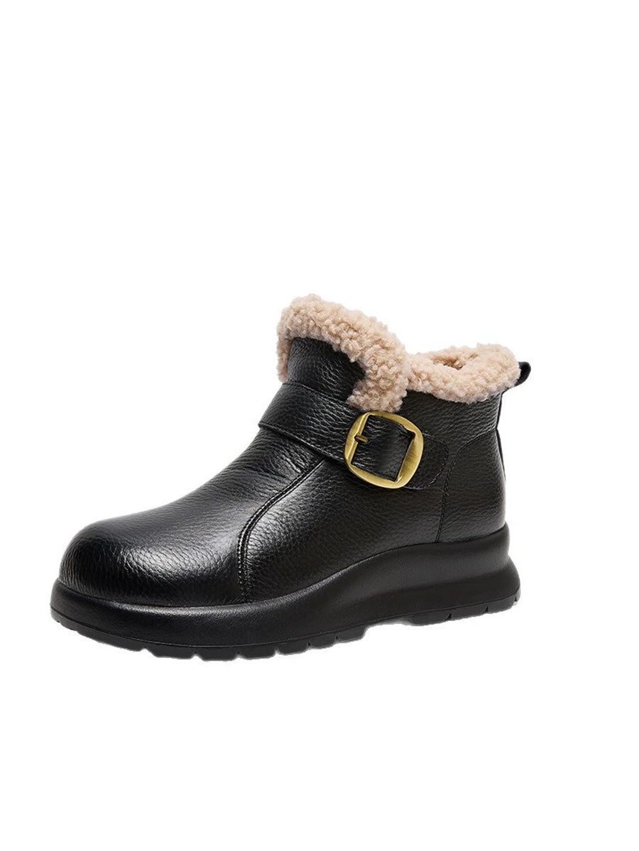 Vetrarstígvél úr ekta leðri úr flísfóðri fyrir konur