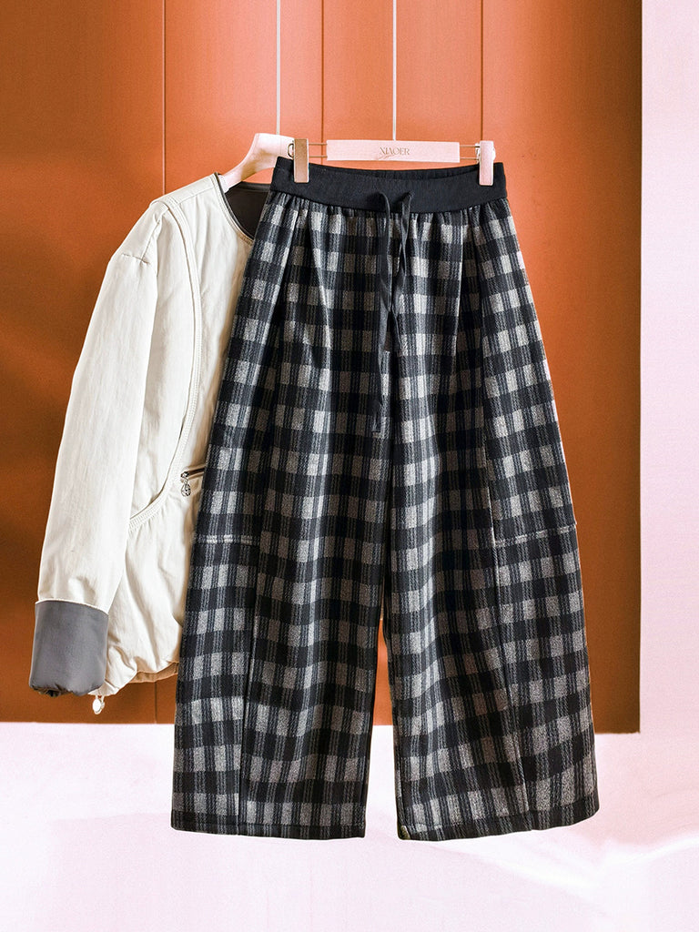 Vetrarbuxur með fleecefóðri fyrir konur, víðar buxur