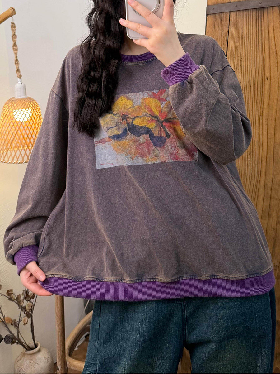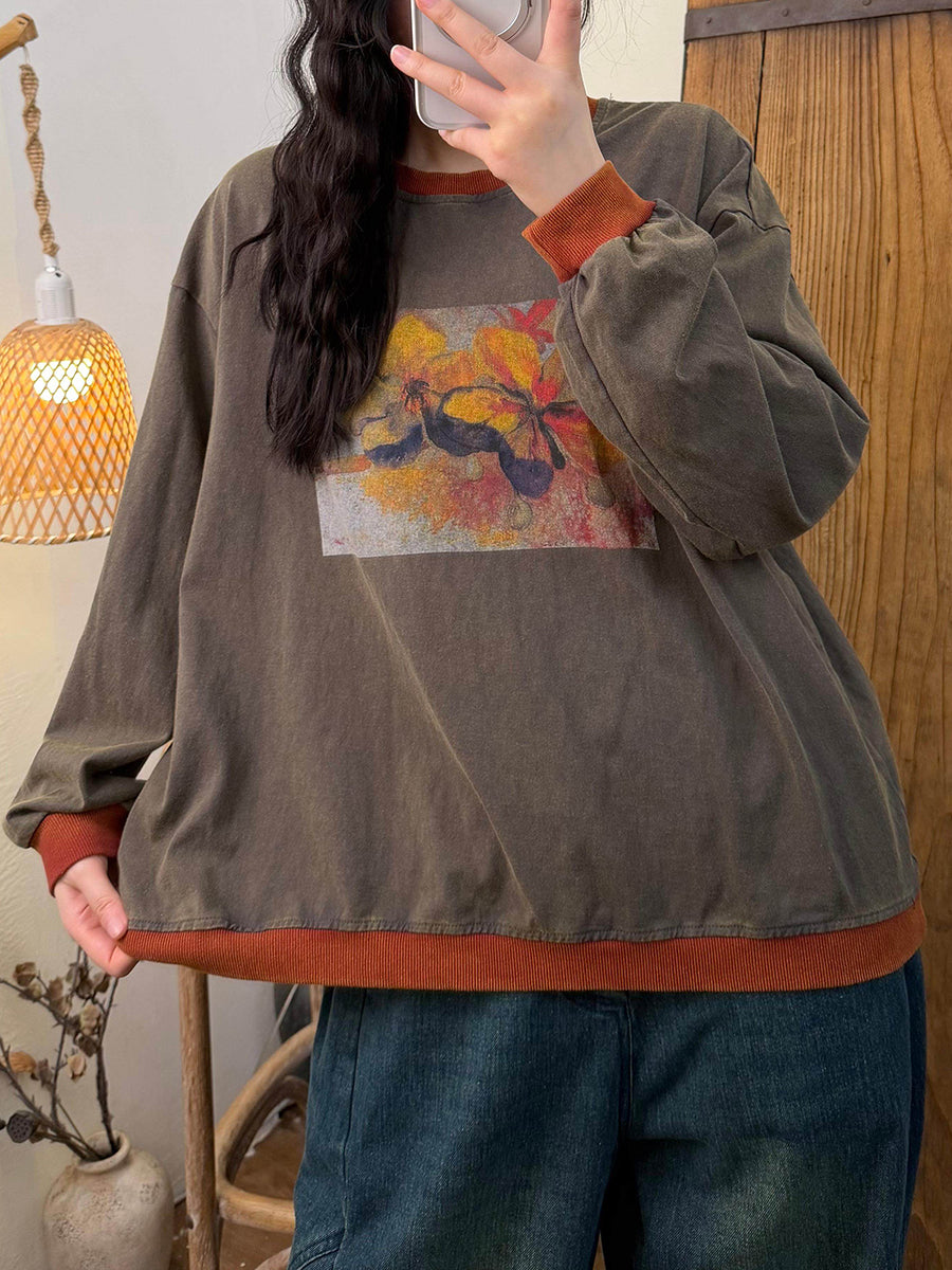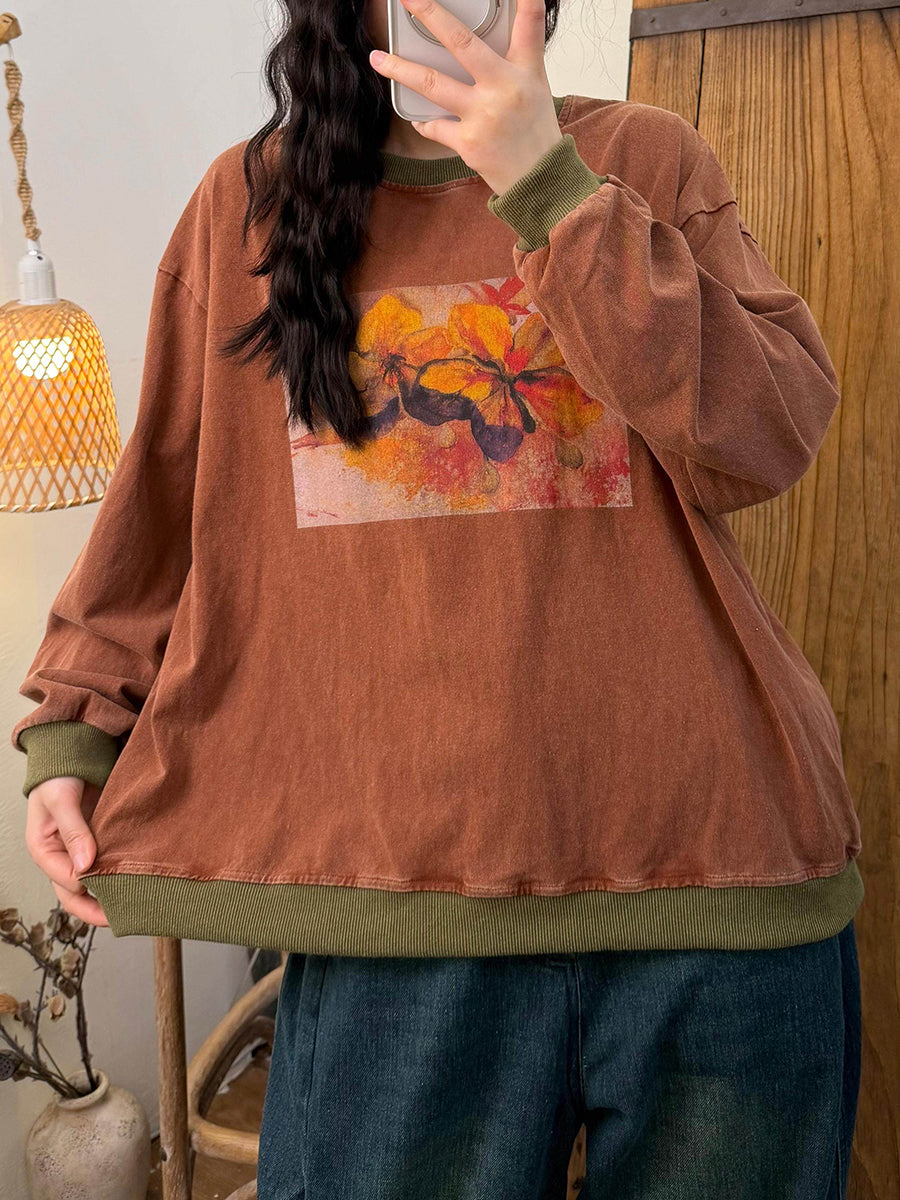 Blusa da donna in cotone con scollo a V e motivo floreale primaverile Artsy