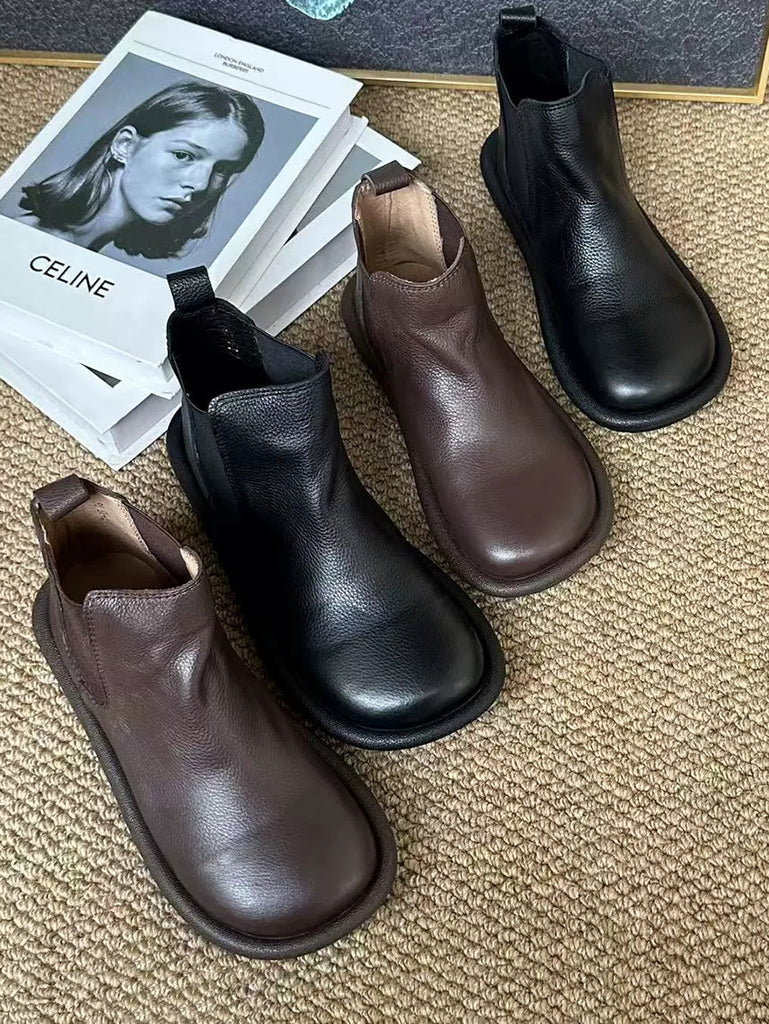 Stivali da donna in pelle vintage autunno solido