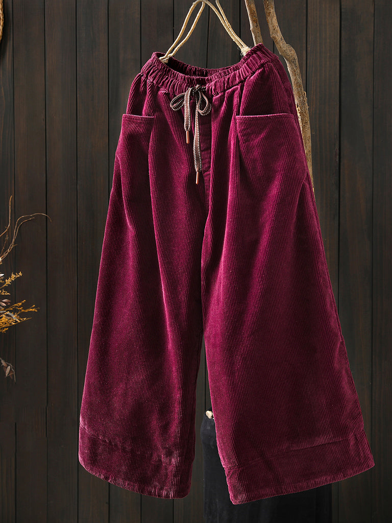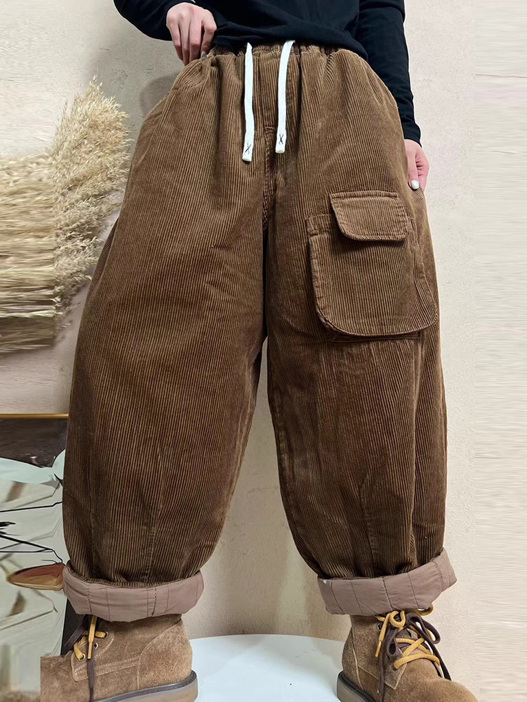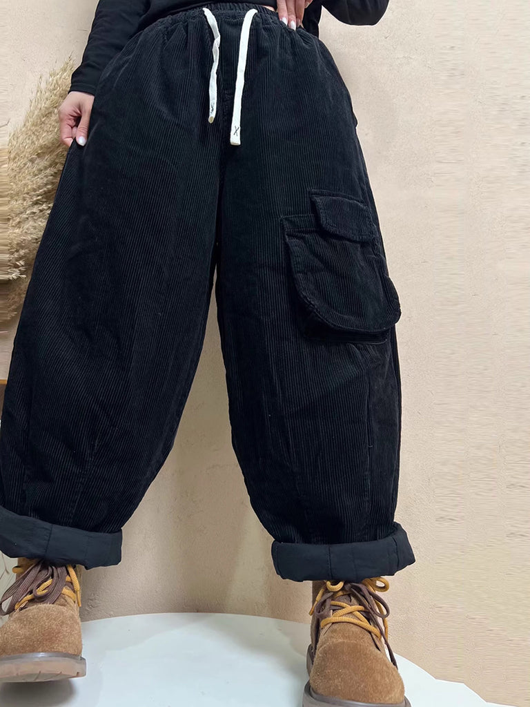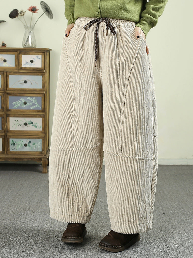 Pantaloni larghi imbottiti in velluto a coste retrò invernali da donna