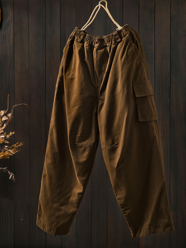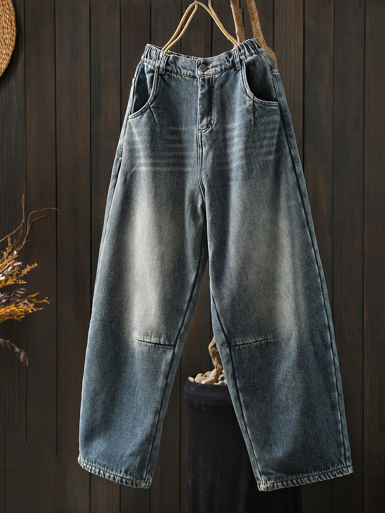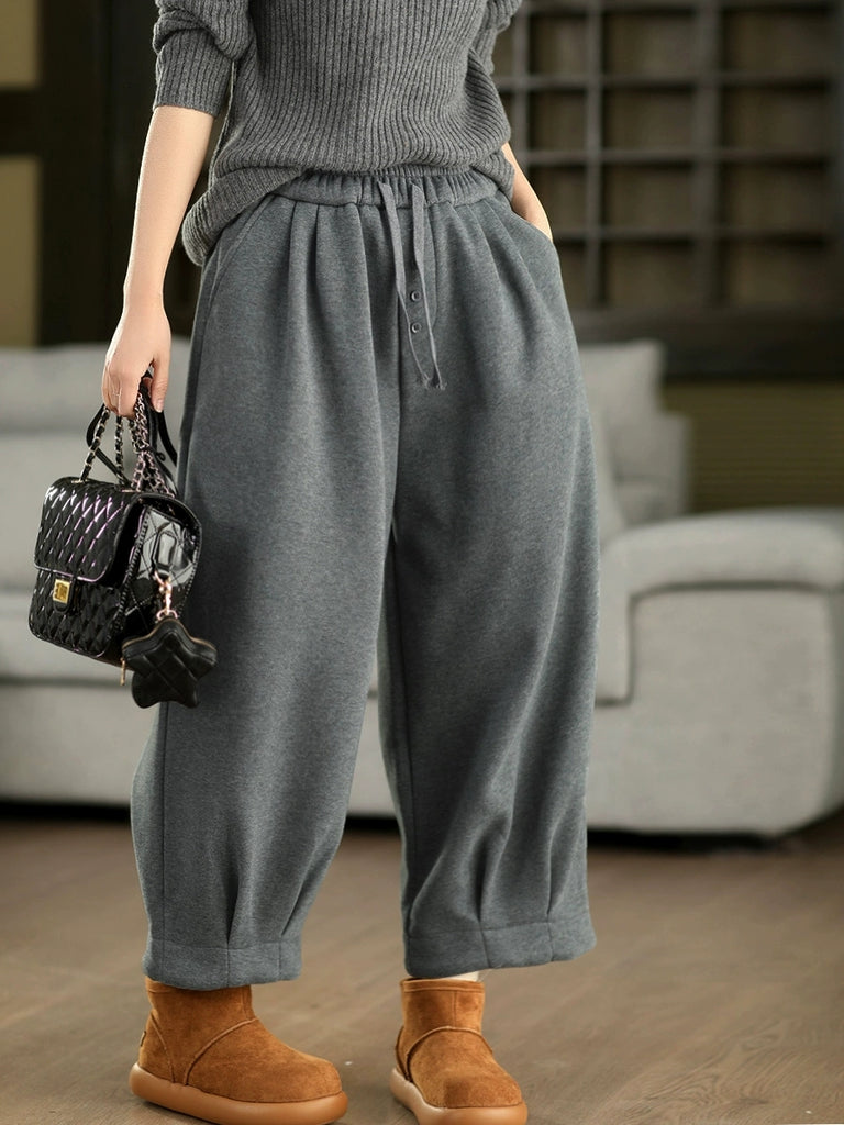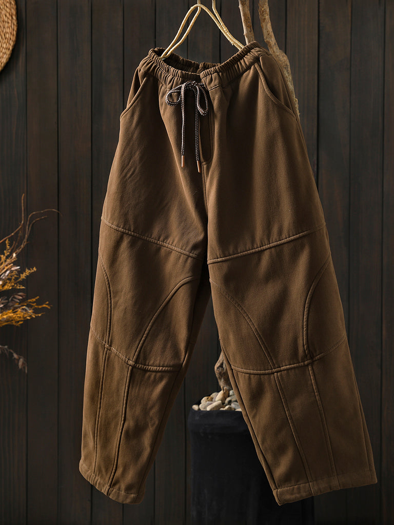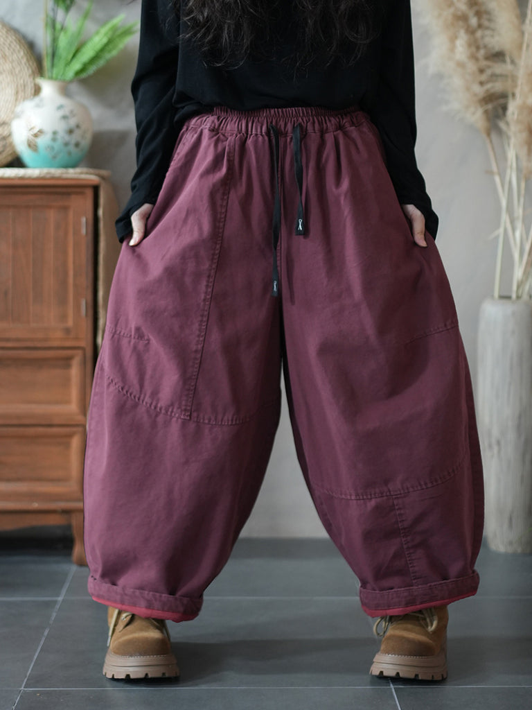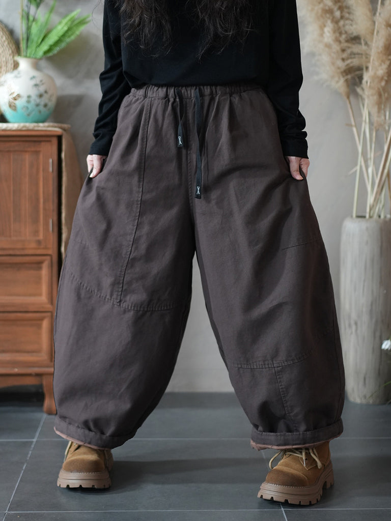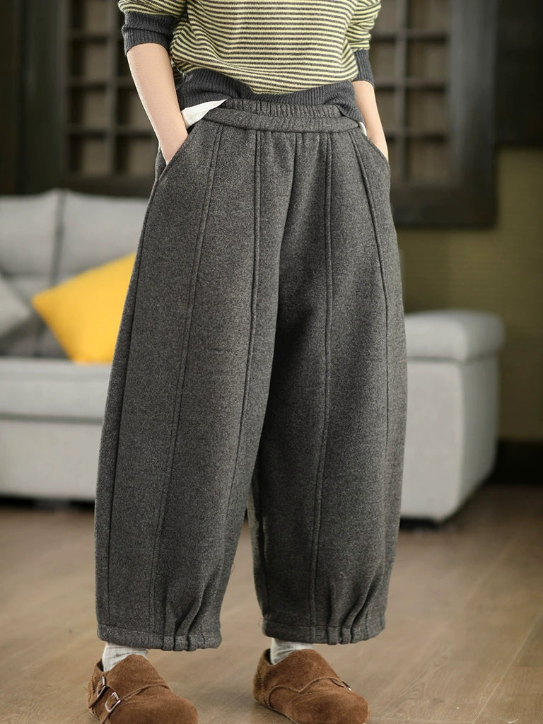 Pantaloni larghi imbottiti da donna invernali retrò in tinta unita