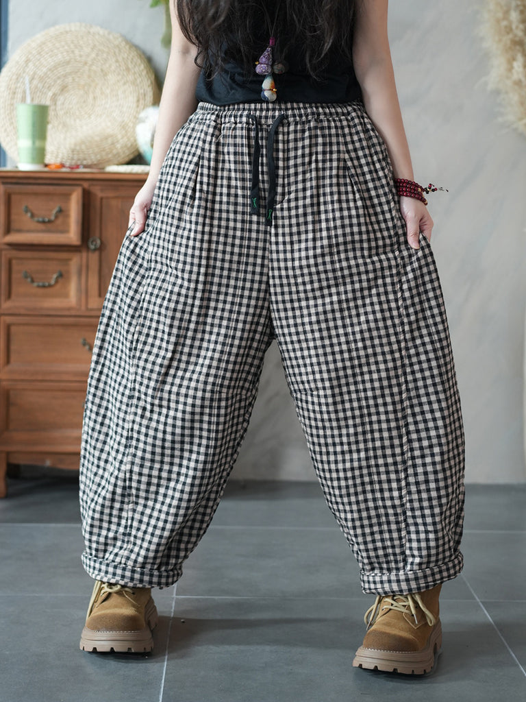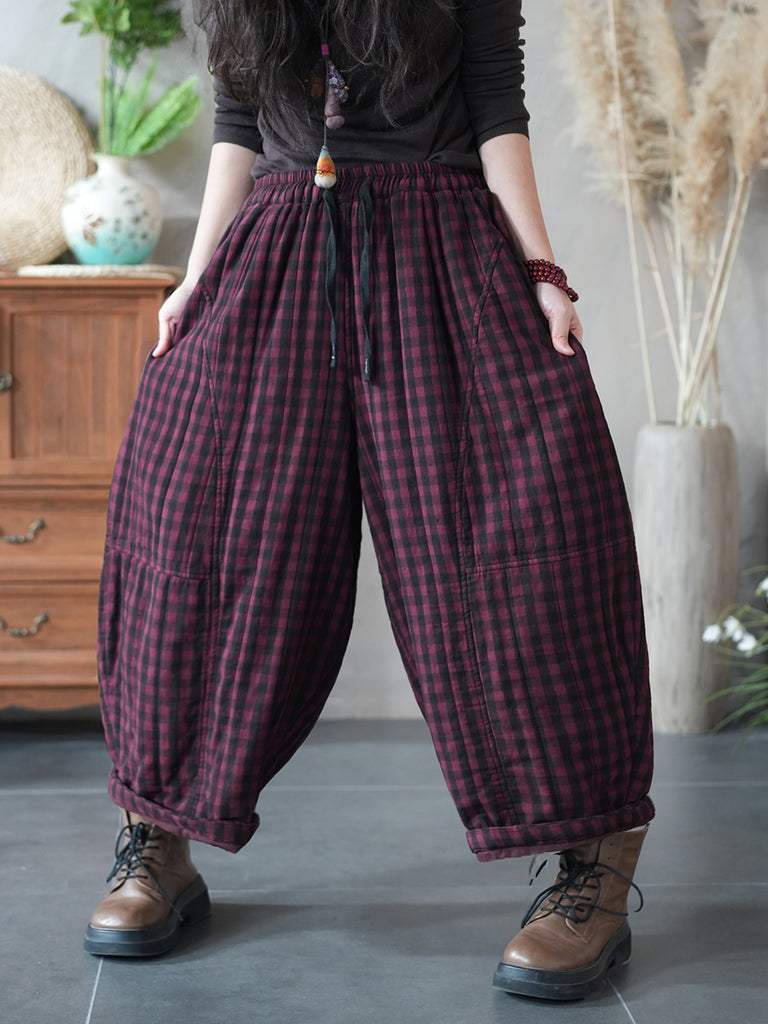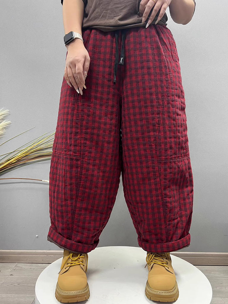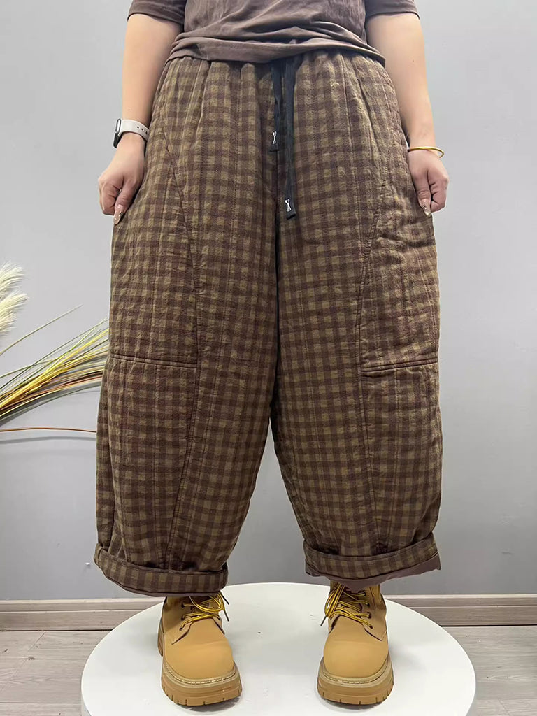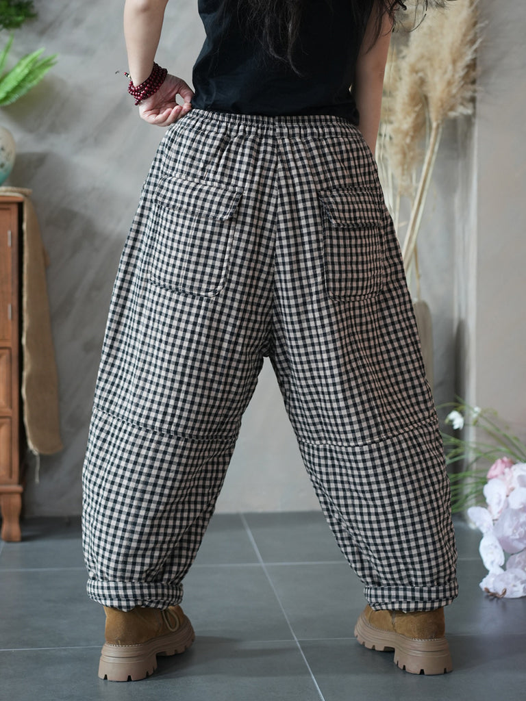 Pantaloni harem imbottiti invernali da donna in stile retrò scozzese