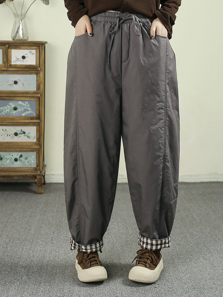 Pantaloni harem imbottiti invernali retrò da donna, di colore puro