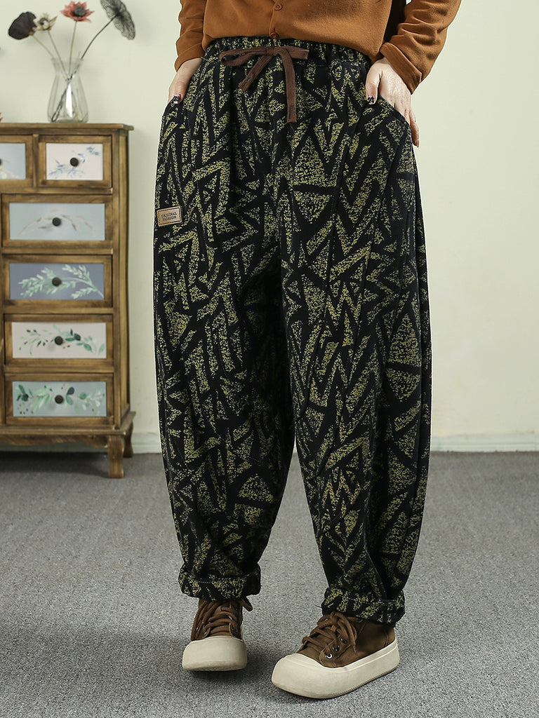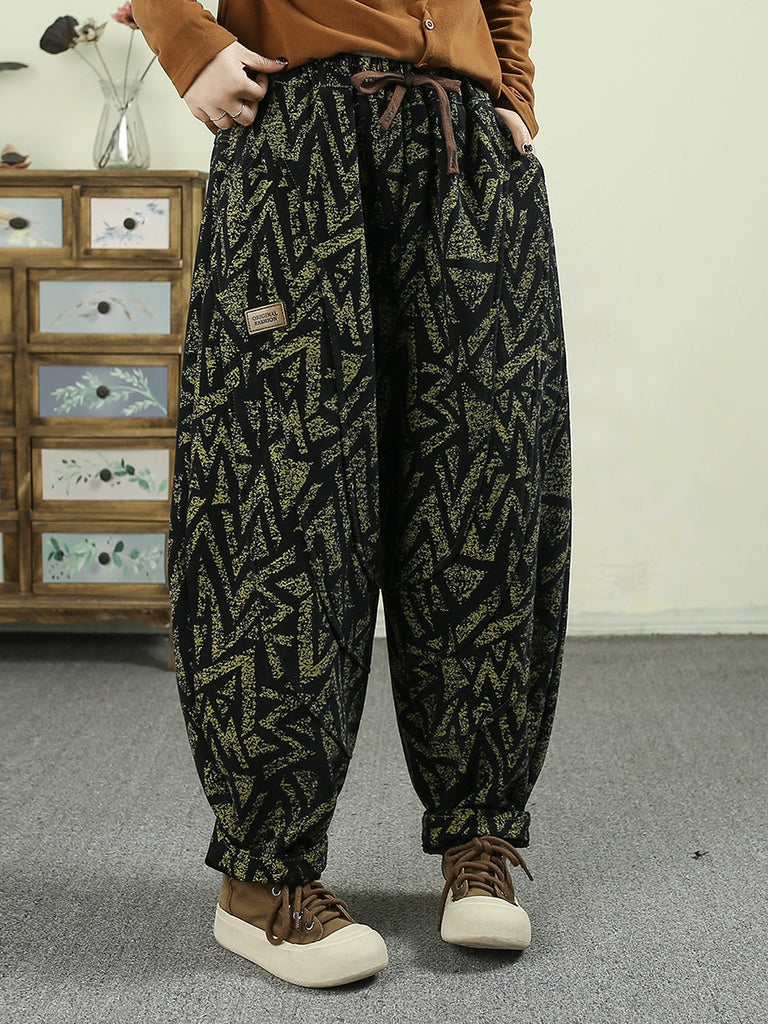 Pantaloni harem invernali retrò geometrici foderati in pile da donna