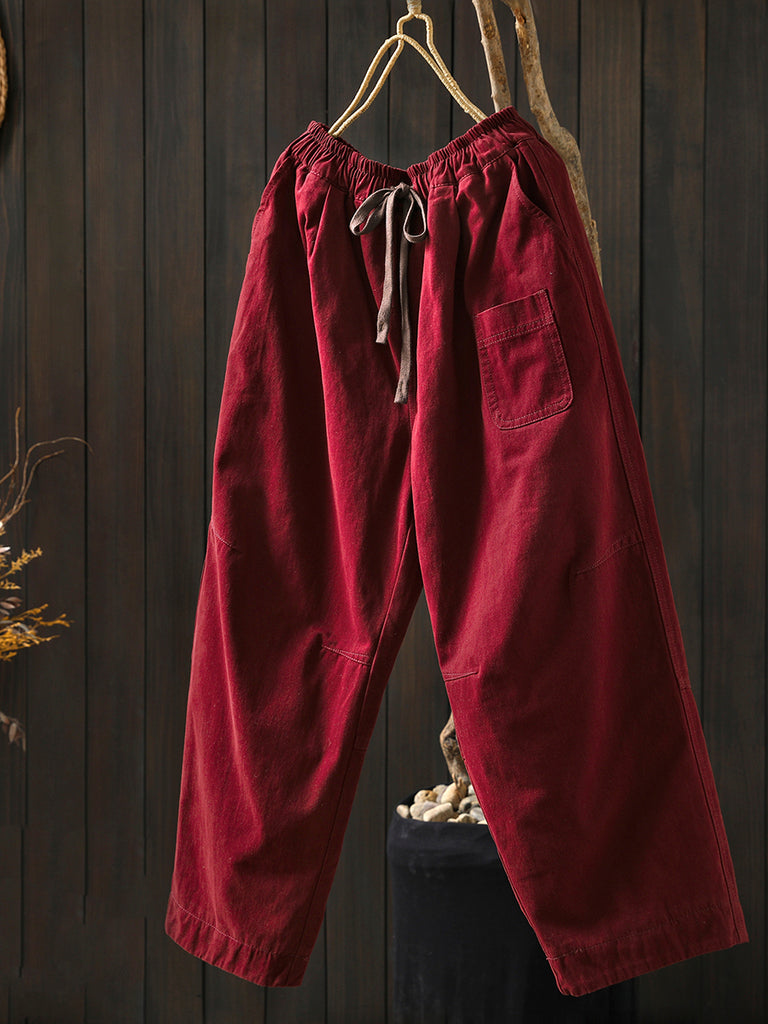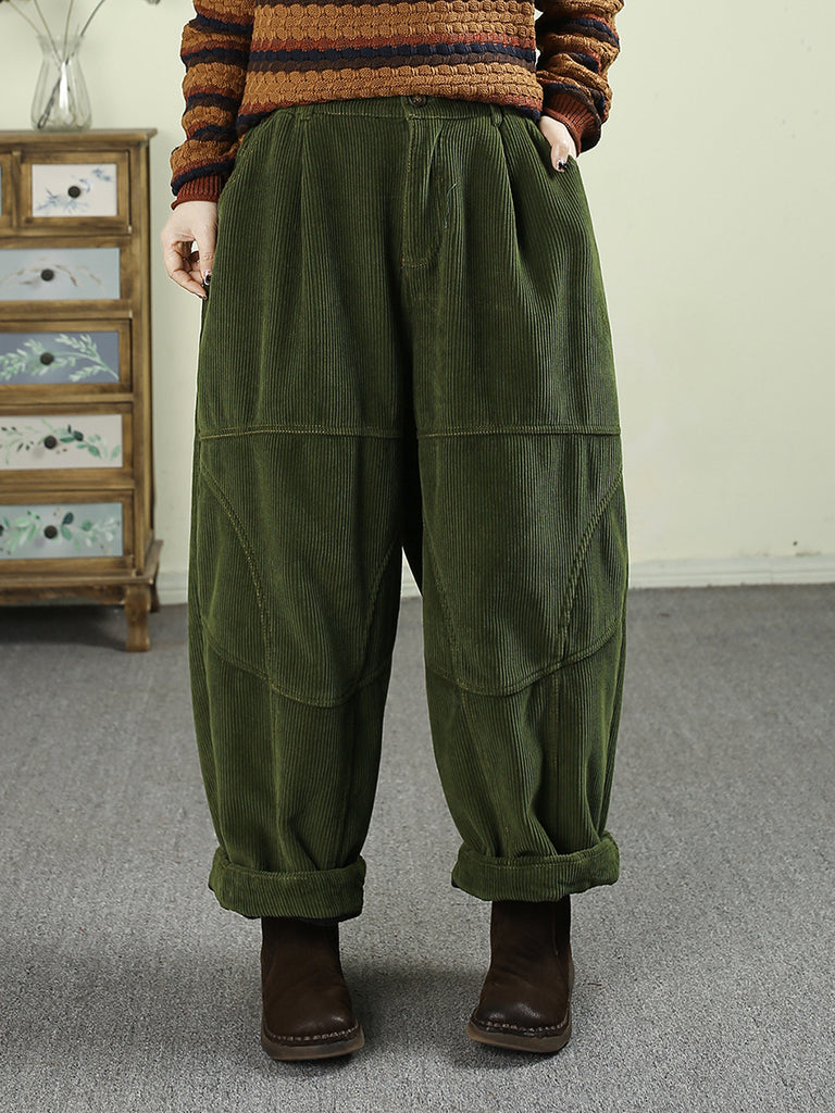 Pantaloni harem imbottiti in velluto a coste color puro, stile retrò invernale da donna