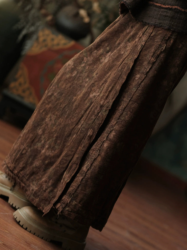 Gonna dritta in cotone con fiori retrò autunnali da donna