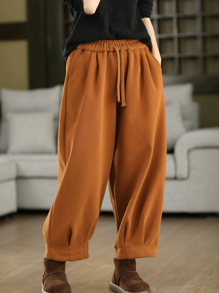 Pantaloni harem invernali retrò da donna, foderati in pile, colore puro